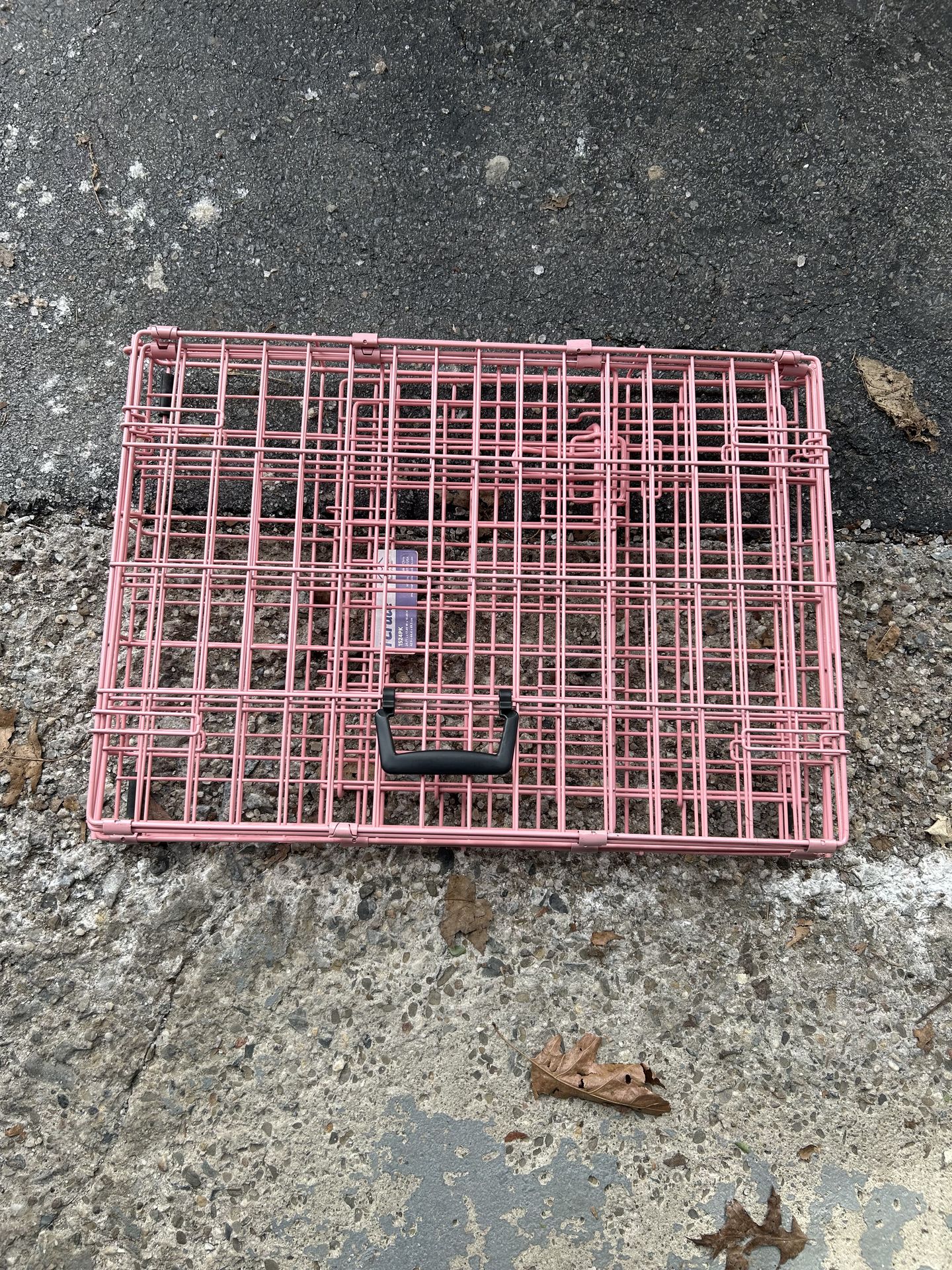 Small pink dig crate for small dogs. Good condition. Has been sitting in garage.