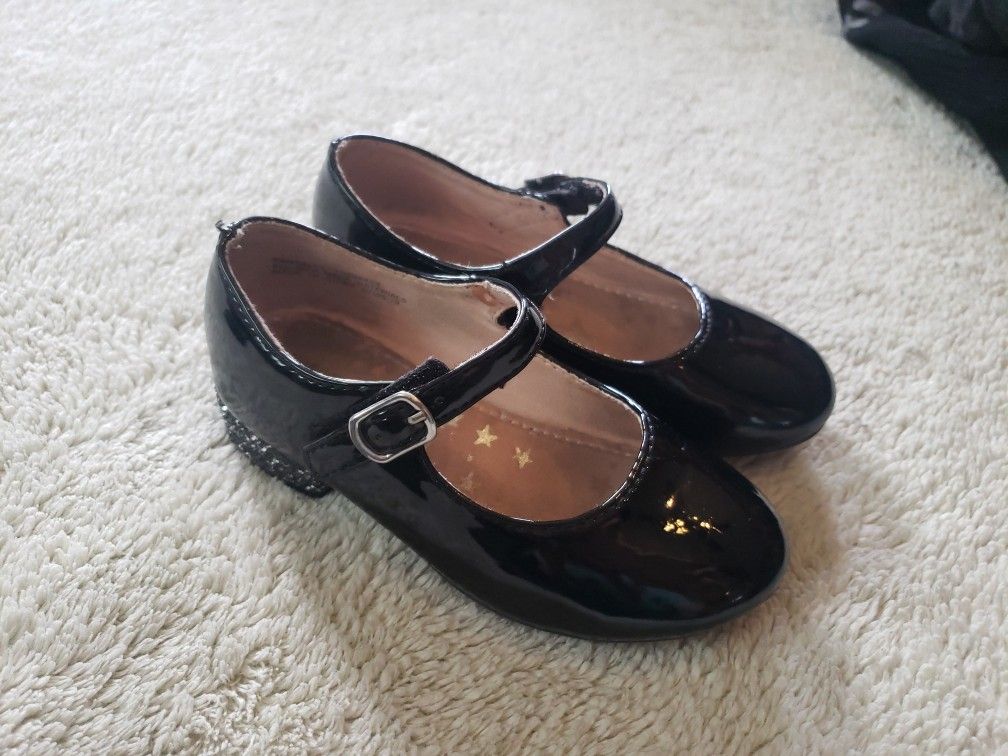 Harper Canyon Girl Size 8 black with sparkle Mary-Jane shoes with velcro. Cash only $15. Pickup only. (Fairhaven/ Yorba, near 22 fwy & 55 fwy)