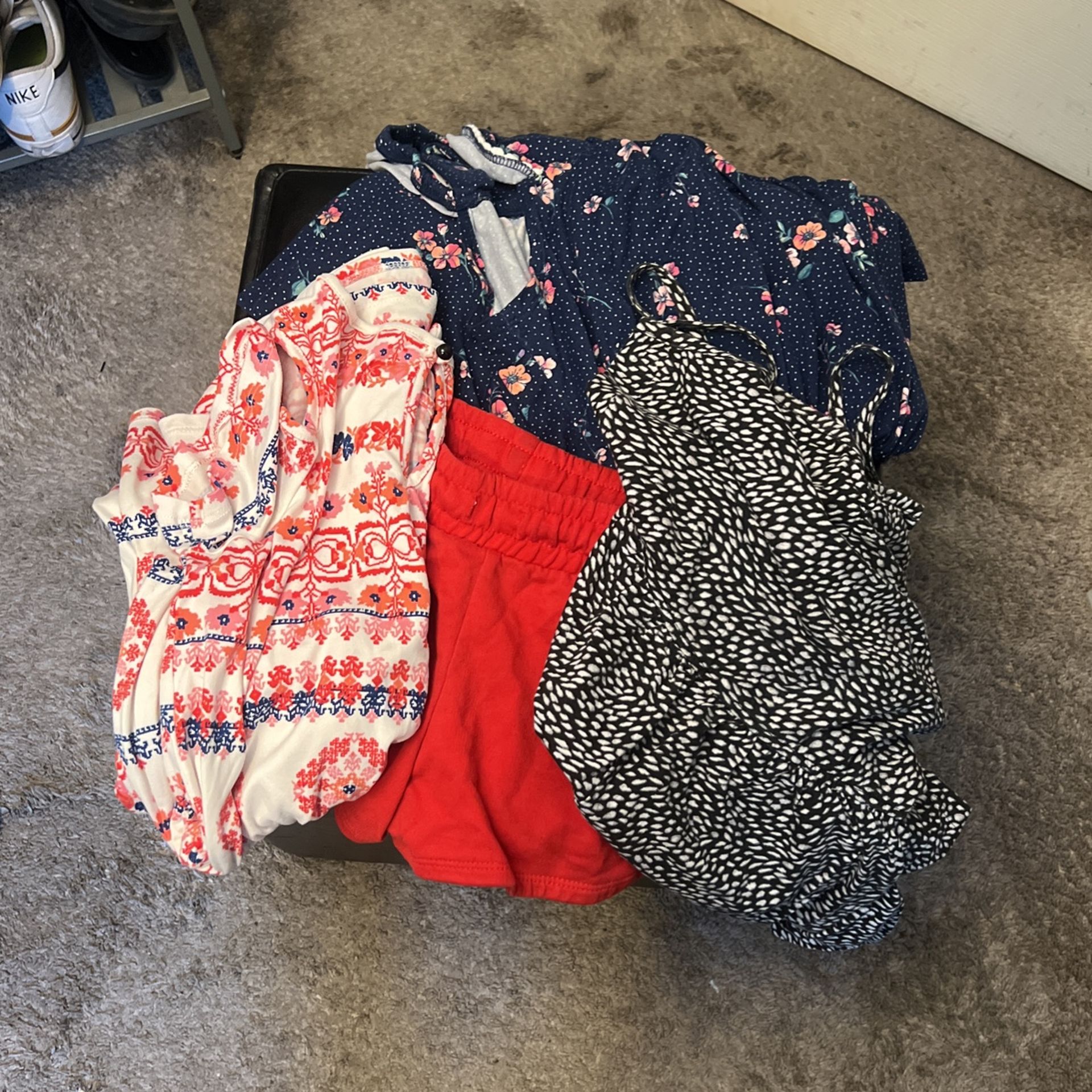 $5 a piece or $40 whole bag Includes rompers(10-12), shorts, shirts (size S)
