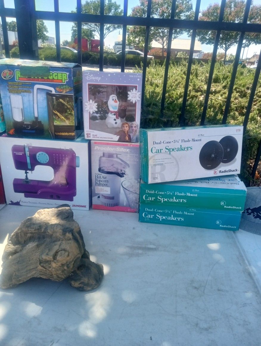 The locker safe 25 bucks that Christmas blow ups $20 each The Rock hide $20 the sewing machine is sold the syringe box $10 each air popcorn maker $10