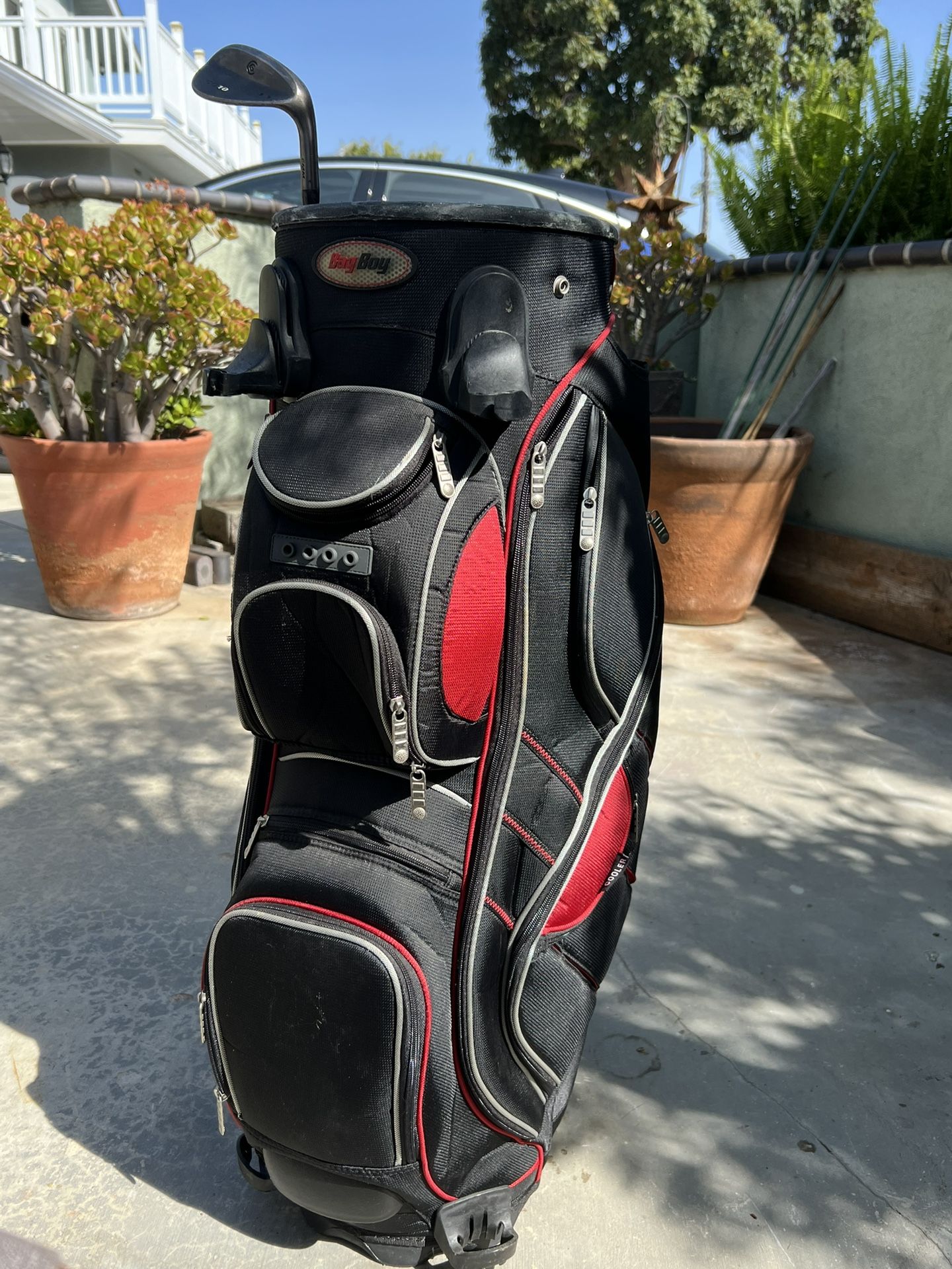 Used Bag Boy Revolver XP Cart Bag w/ Swivel System & Grip-Lok Technology 14-Way Divider. Good condition, no holes, red & black color combo. Keeps drinks cool. Grip lock keeps clubs in place. Revolves at top for easy access to clubs. Amazon new value is over $300 so here its half price. No trades. Only local pick up in OC area. Venmo and cash only. No shipping.