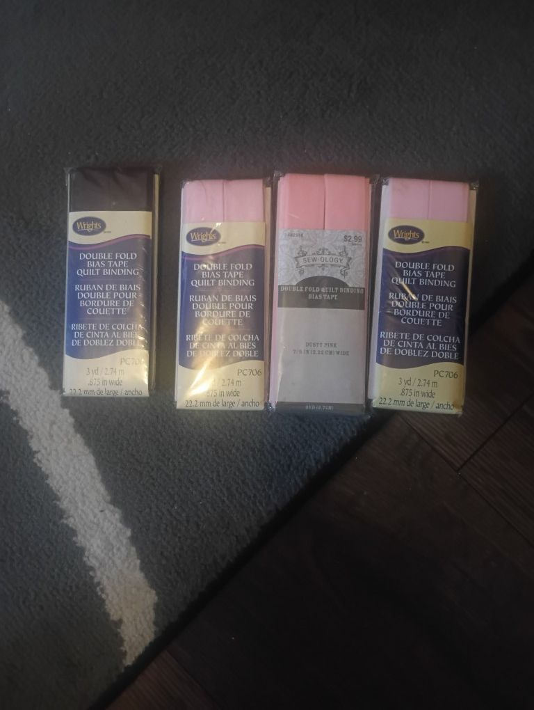Double Fold Bias Tape Quilt Binding 3yd x .875 - 3 Pink & 1 Brown.