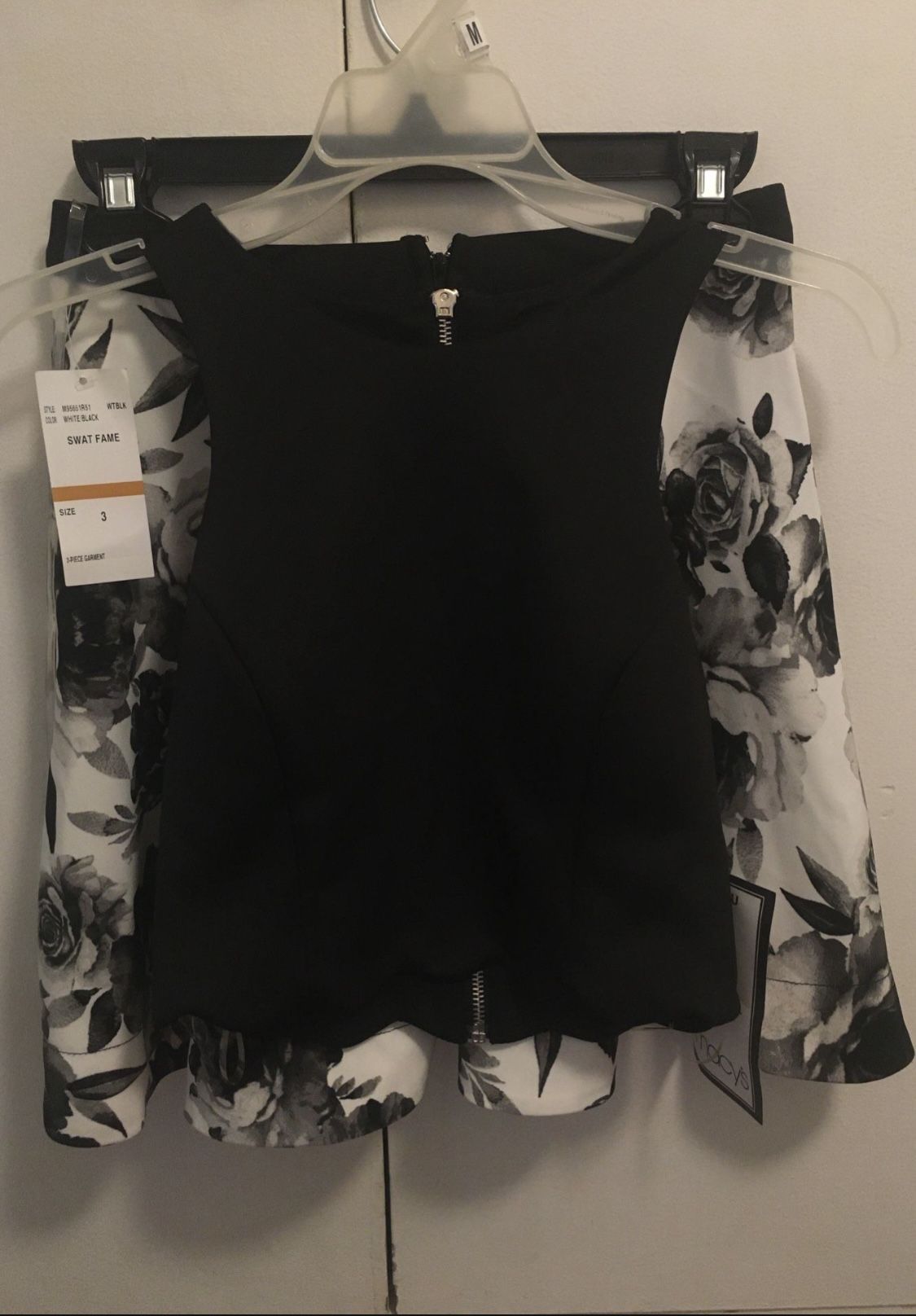 New with tags Cute 2 piece set top/skirt Color- black and white Floral skirt Junior size 3 Pick up in South Pasadena