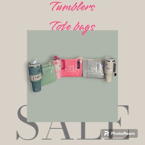 Steven madden green and stanley tumblers$ 80 Tote marc jocobs pink and grey ,stanley tumblers $70