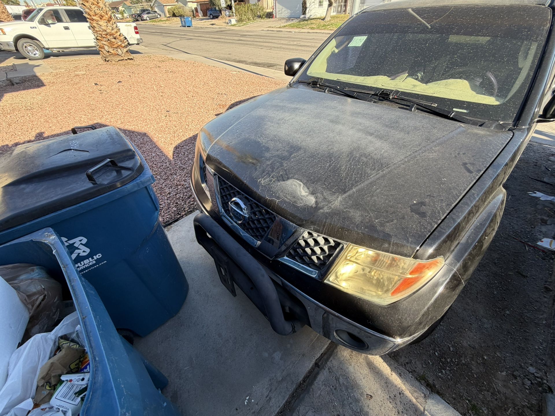 Nissan frontier in good condition, 156,000 miles, everything works, timing change was replaced a year ago(part have a warranty for Napa auto parts) and catalytic converter and sensors around Four months sometimes displayed a engine light because have a air leak in one of the catalytic converter junction(u can run the truck for days without no engine light then just clear the error code an started again) did not fixed because I’m not leaving in last Vegas anymore. 5600 obo