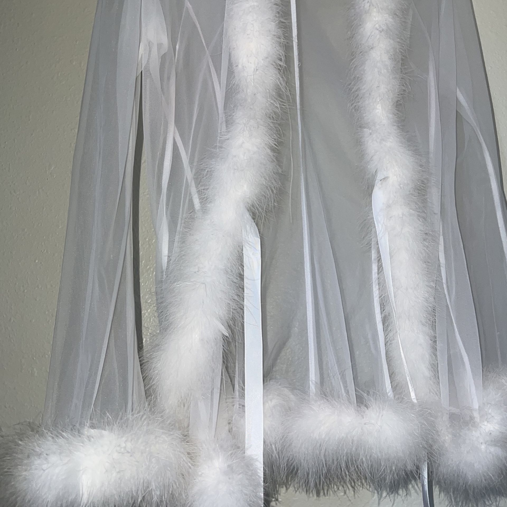 Tegan Mesh Marabou Short White Robe Size 0/S Shirley Of Hollywood