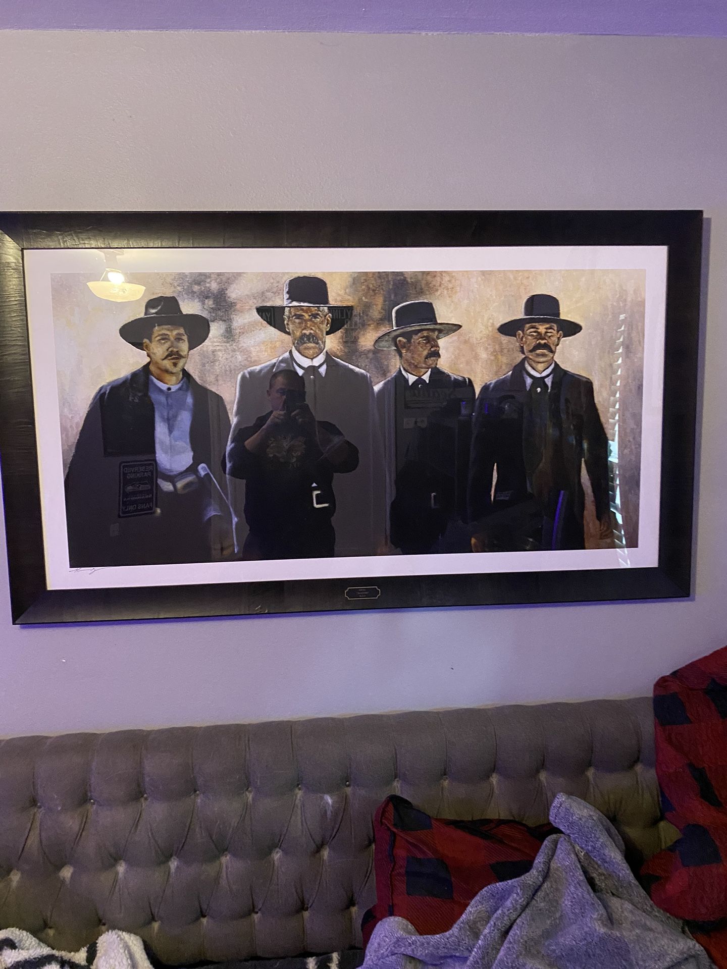 Framed from michaels. Wyatt, Virgil, Morgan Earp with Doc Holliday walking towards the OK corral.