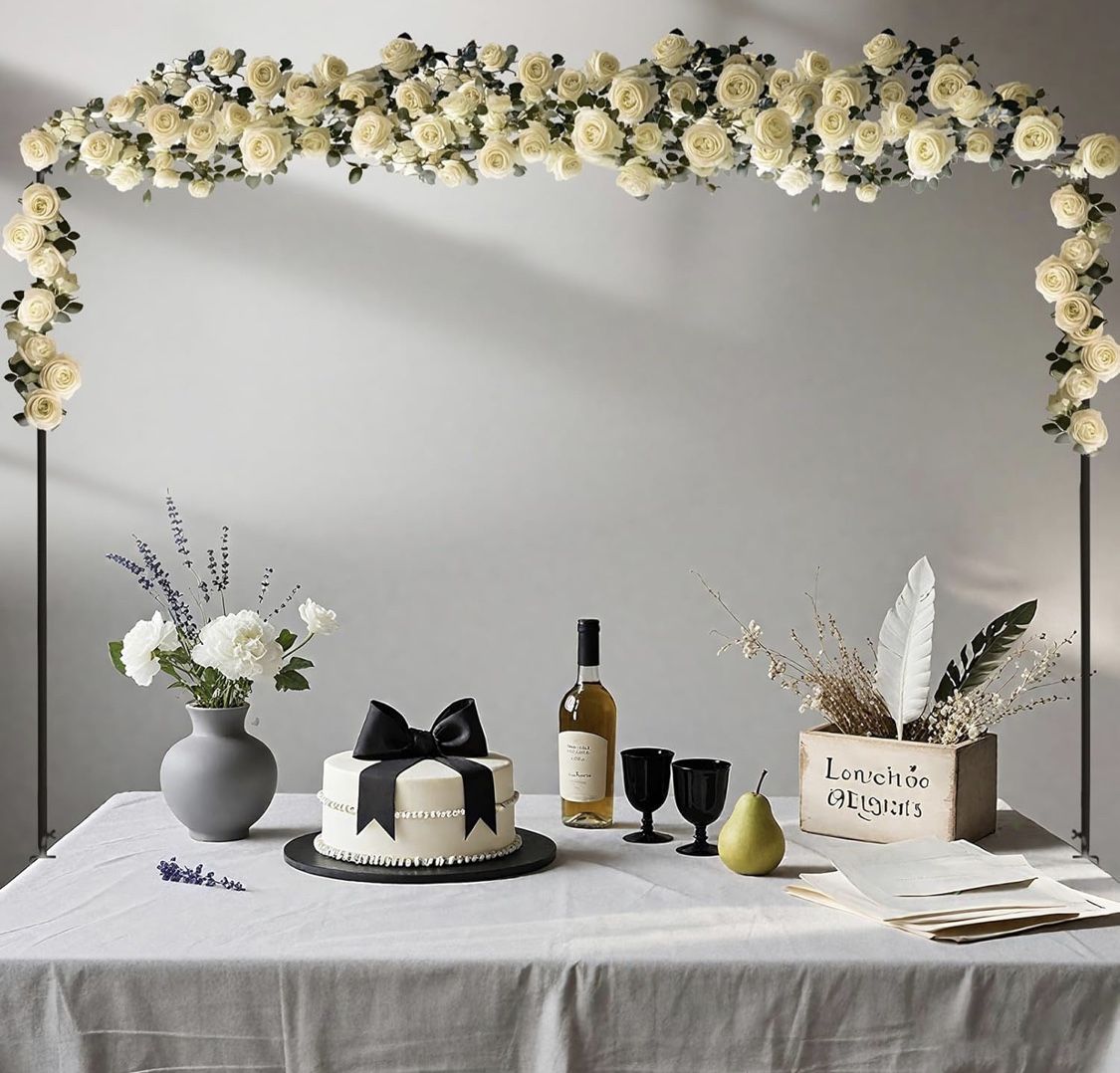 Over The Table Rod Stand with Clamps, Adjustable 46"-100'' Length 29"-55" Height Table Balloon Arch Stand for Wedding Birthday Festival Celebration Decoration, Metal Decorating Rod Hanging, Black