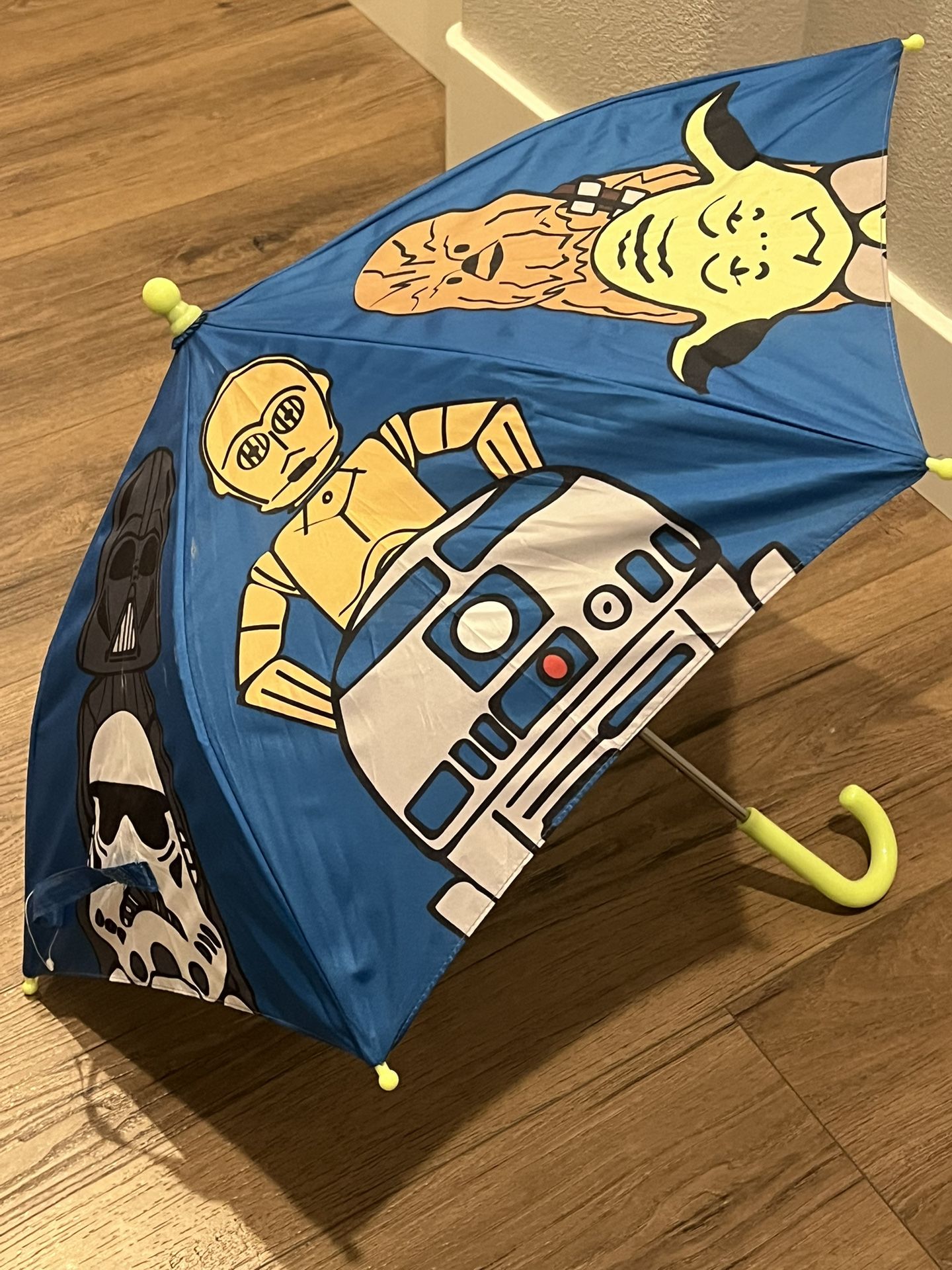 New Kids Blue Star Wars Umbrella. Brighten up rainy days with this fun blue Star Wars umbrella featuring beloved characters. Perfect for young fans, this umbrella is both practical and playful.