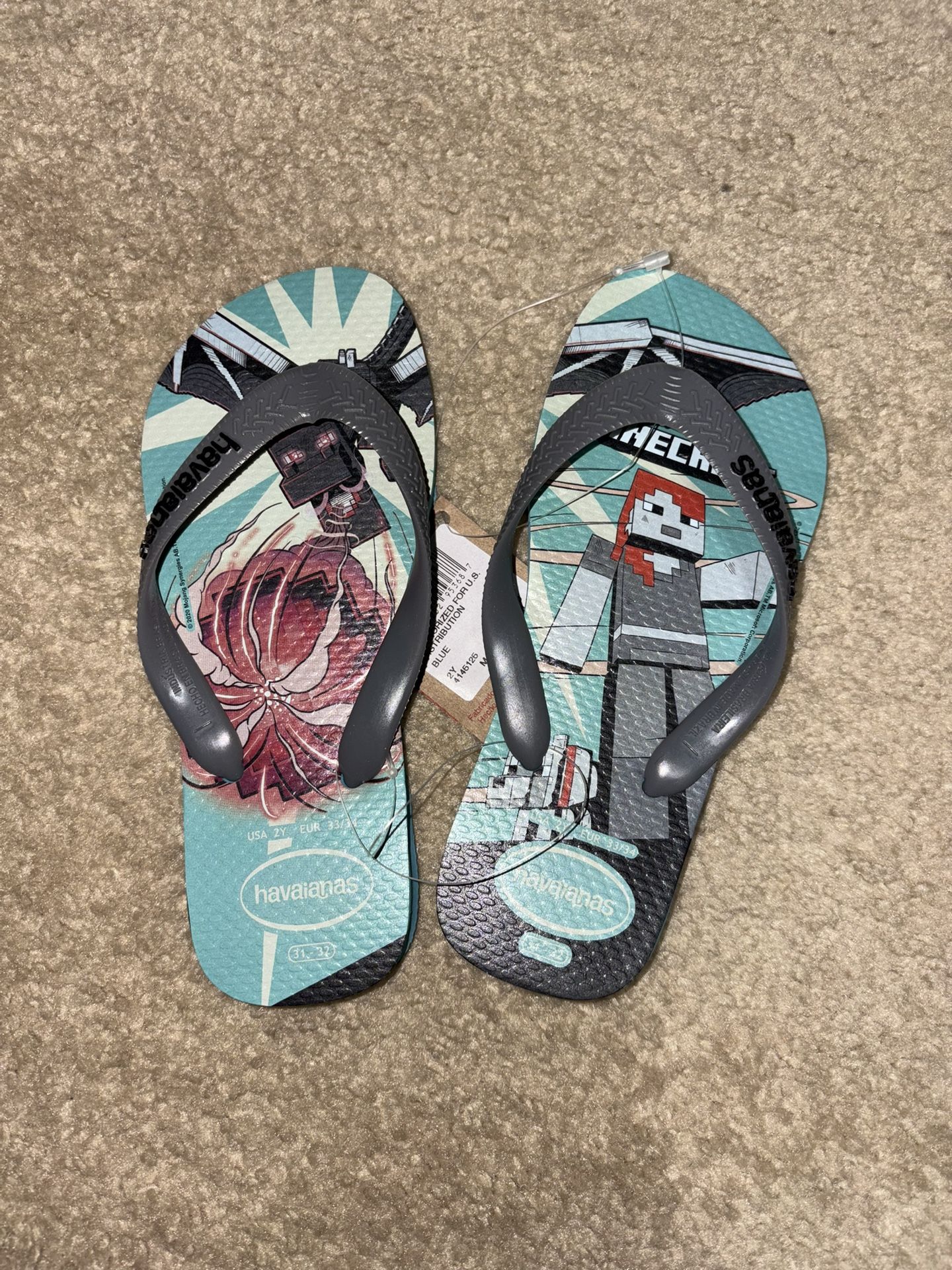 Size 2Y - Havaianas Minecraft Blue Flip Flops
