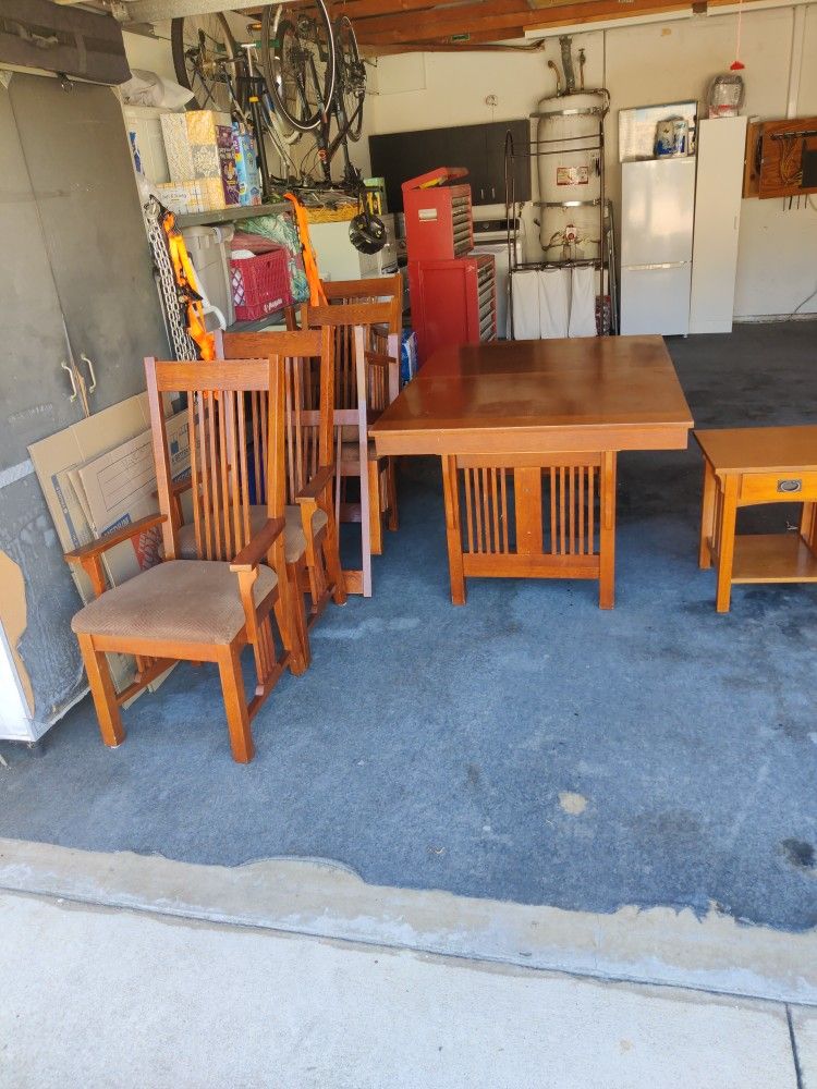 Dining Room Table And Chairs. End Table And TV Stand. Mission Style
