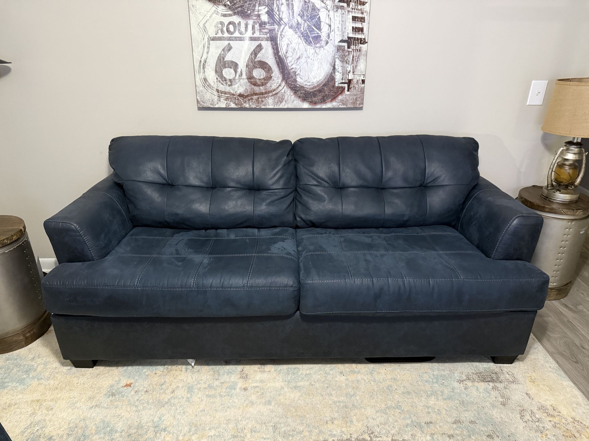 Navy blue couch for sale.