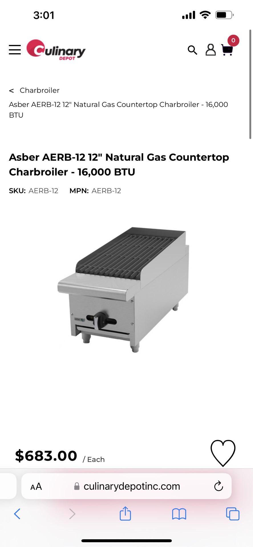 Asber AERB-12 12" Propane Countertop Charbroiler - 16,000 BTU