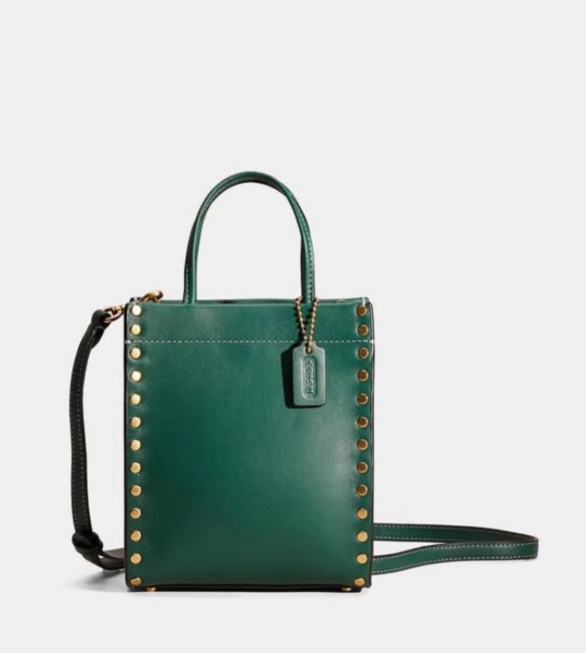 Measurements Materials Handle Strap Features Additional Details Editor's Notes Add to Bag Length: 5.5" Height: 6.5" Width: 3.0" Glovetanned leather Fabric lining Handles with 3" drop Detachable strap with 21.50" drop for shoulder or crossbody wear One credit card slot Magnetic snap closure Four protective feet at base Bonnie Cashin inspired