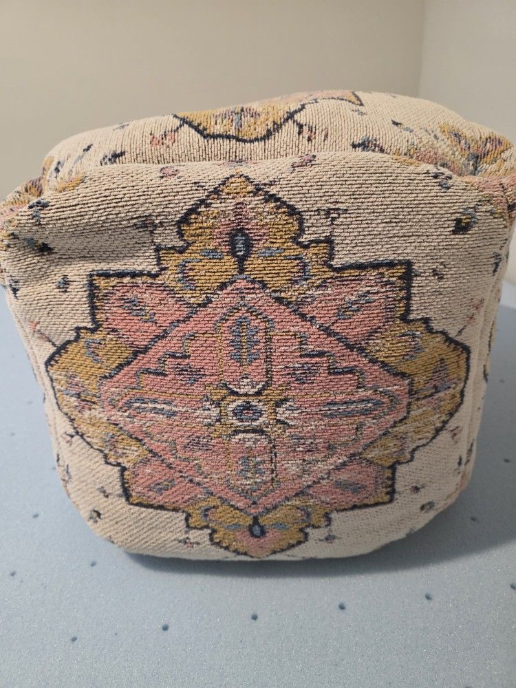 Moroccan style foot rest barely used in daughter's room. In good condition. Measures as follows: 19 inches Width, 15 inches Tall, 17 inches Depth. A beautiful piece made well. Pickup in Canton Georgia area
