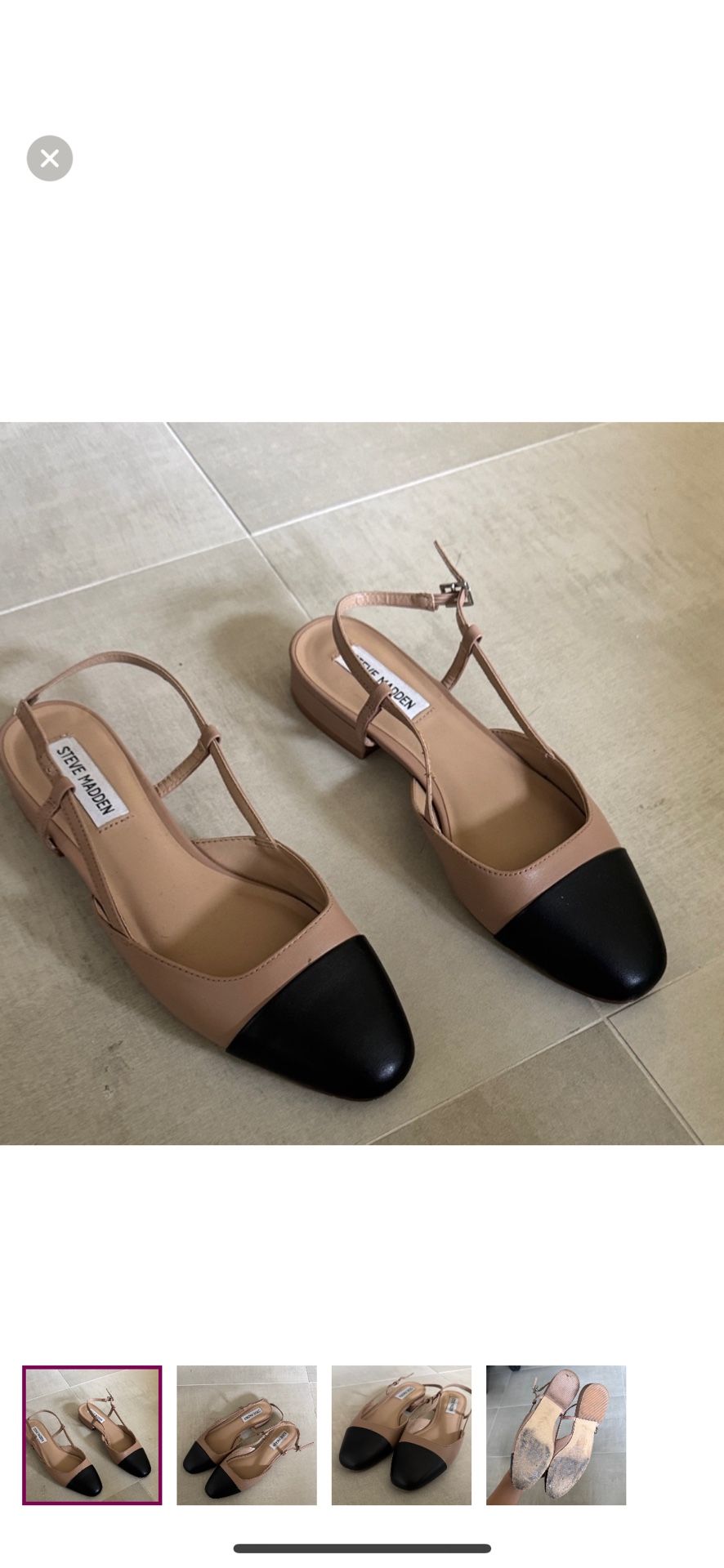 Elegant Steve Madden flats with a black toe and brown body. Perfect for versatile styling. Great used condition
