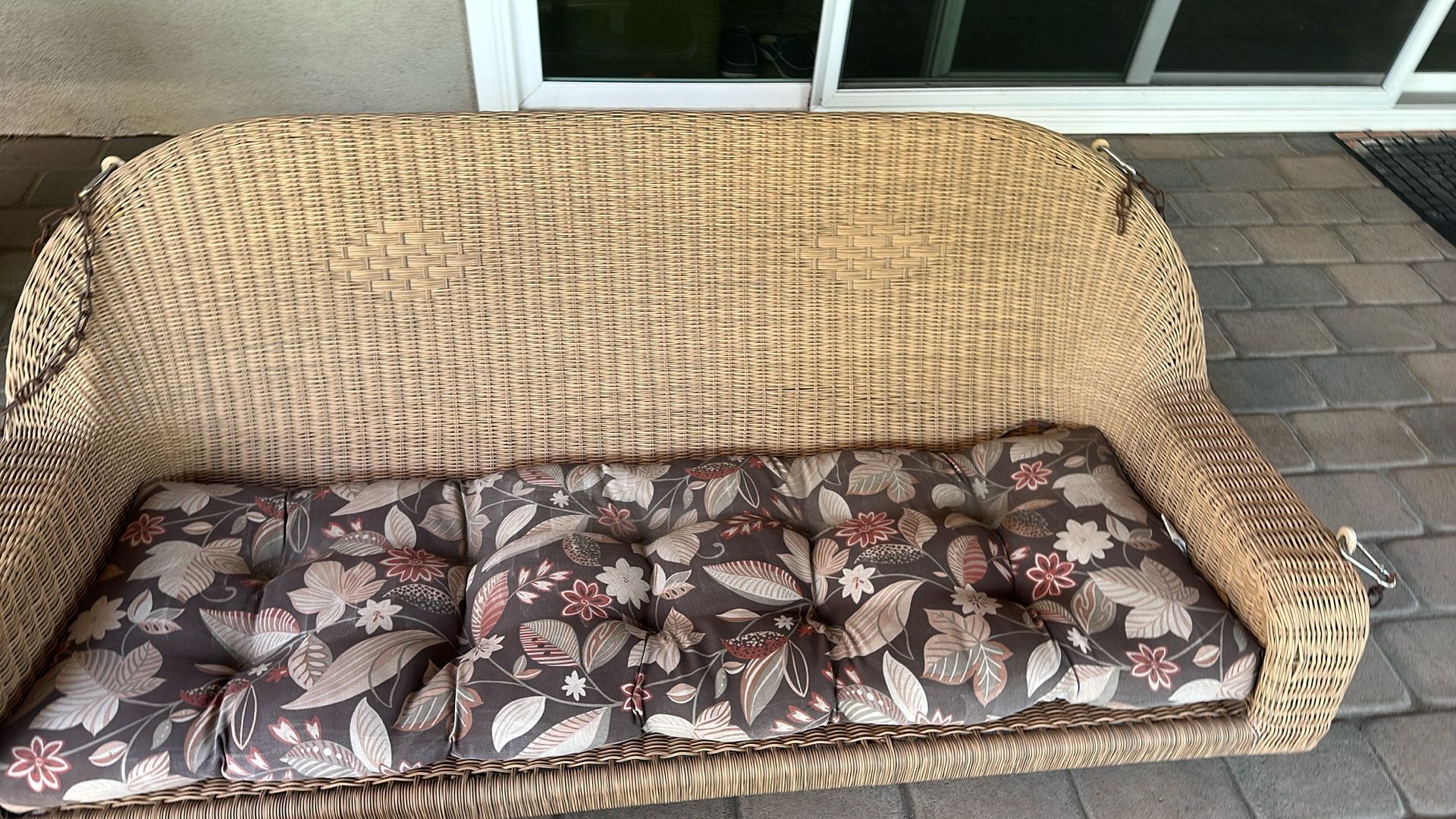 Swing hanging go for porches or patios or indoor holds up to approximately 550 pounds give or take