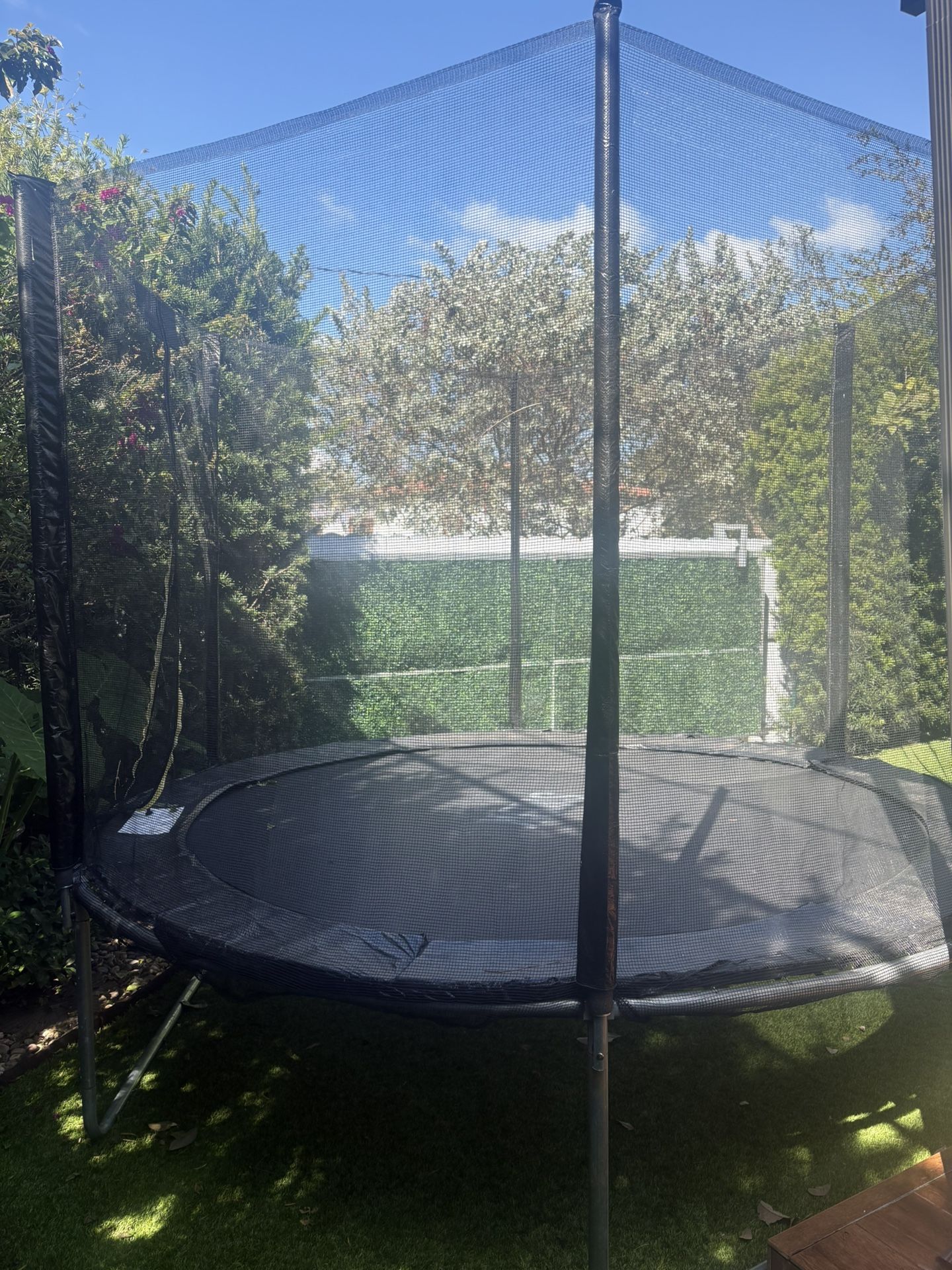 14 Ft diameter trampoline with net in excellent condition, 1 year old.
