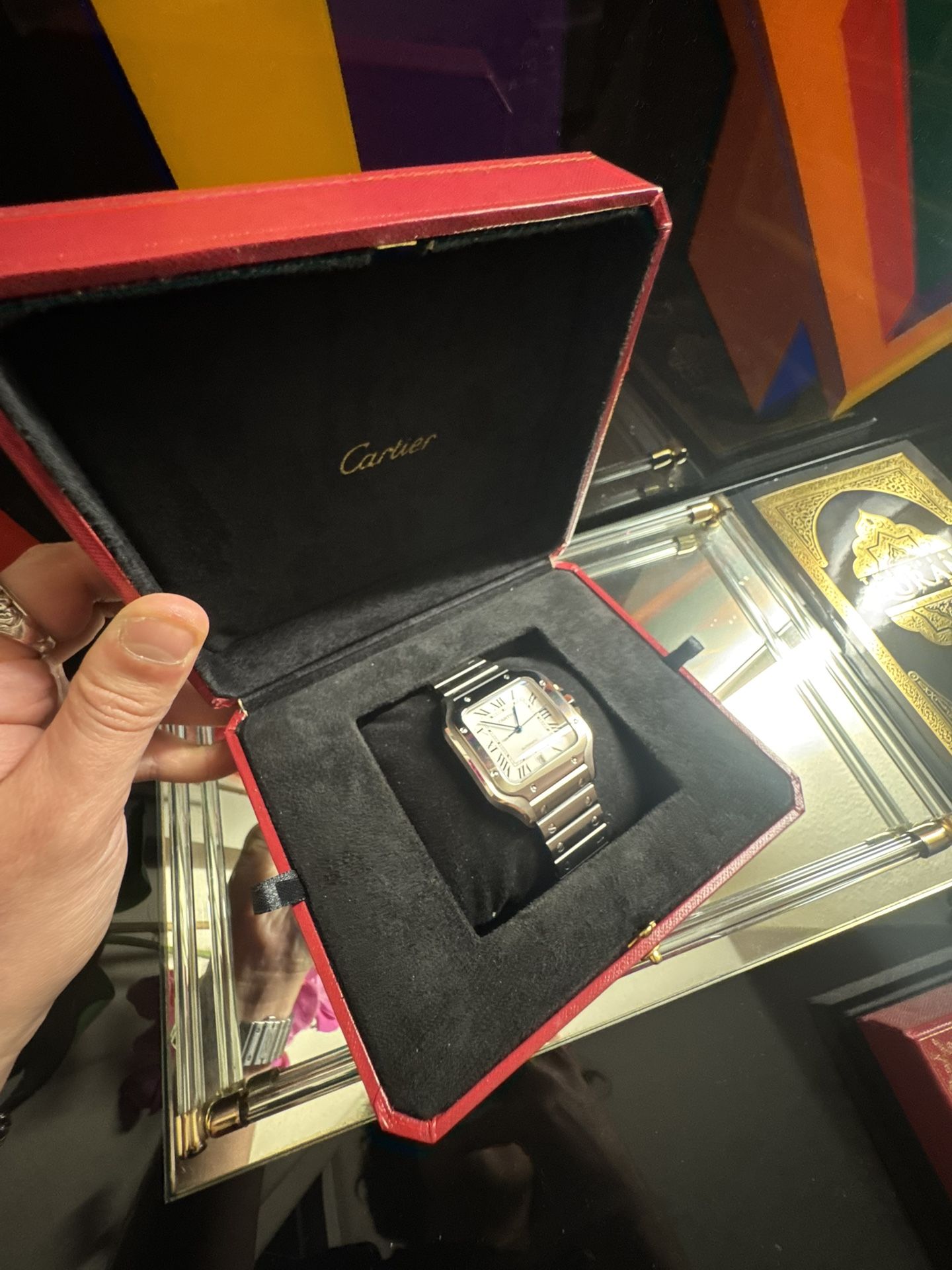 Cartier santos 40 mm with box and links no card included. asking $6850 for the set and I will not accept any crazy negotiation please offer with consideration. Watch is 100 percent authentic. Refer to the photos of the movement. Thank you.