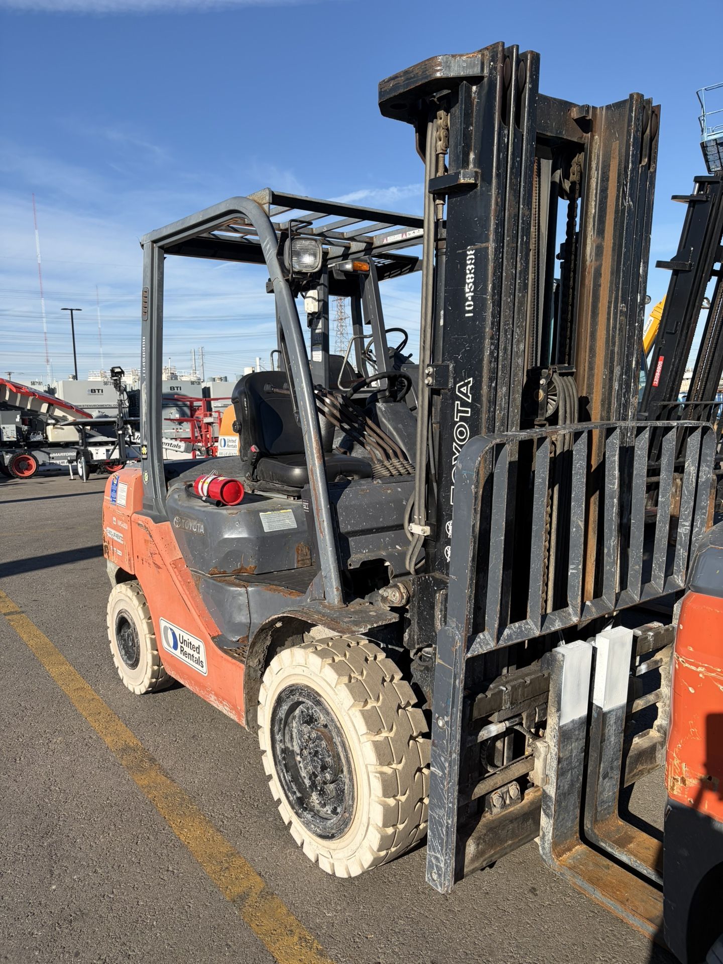 Equipment #:10458398 Make: TOYOTA Model: 8FDU30 Year: 2016 Last Service: 02/06/2026 Hours: 2,752.550 MAKE: TOYOTA MODEL: 8FDU30 WIDTH: 48.8" HEIGHT MAST LOWERED: 89.2" HEIGHT OVERHEAD GUARD: 85.5" LENGTH (WITHOUT FORKS): 110.8" SERVICE WEIGHT: 10480 BASE CAPACITY: 6000 LBS NET CAPACITY 5620 LBS LOAD CENTER: 24" FREE LIFT HEIGHT: 41.7" MAX FORK HEIGHT 187"