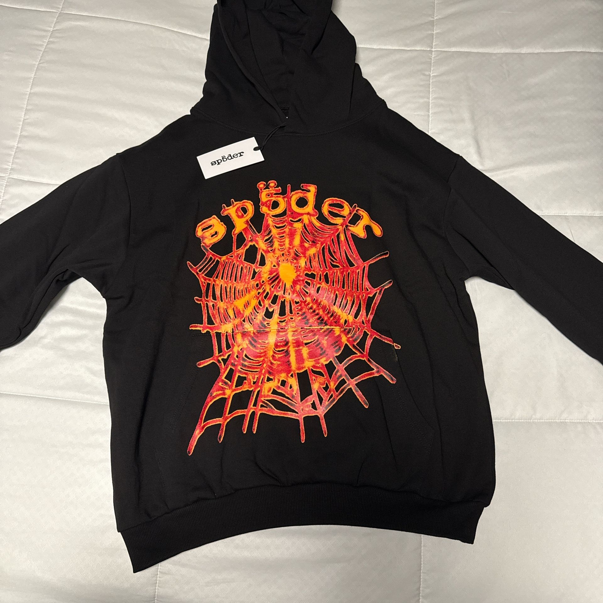 SP5DER HOODIE🕷️🕷️ color orange and red barley worn