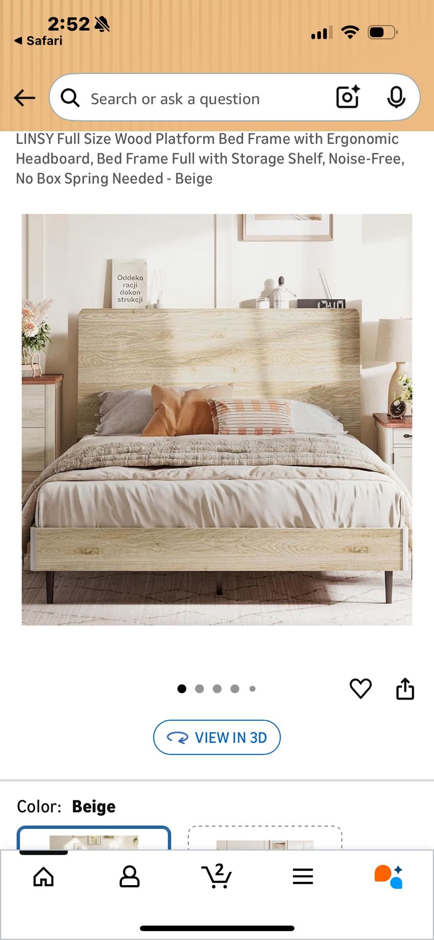Full Beige Bed frame No Boxspring Required