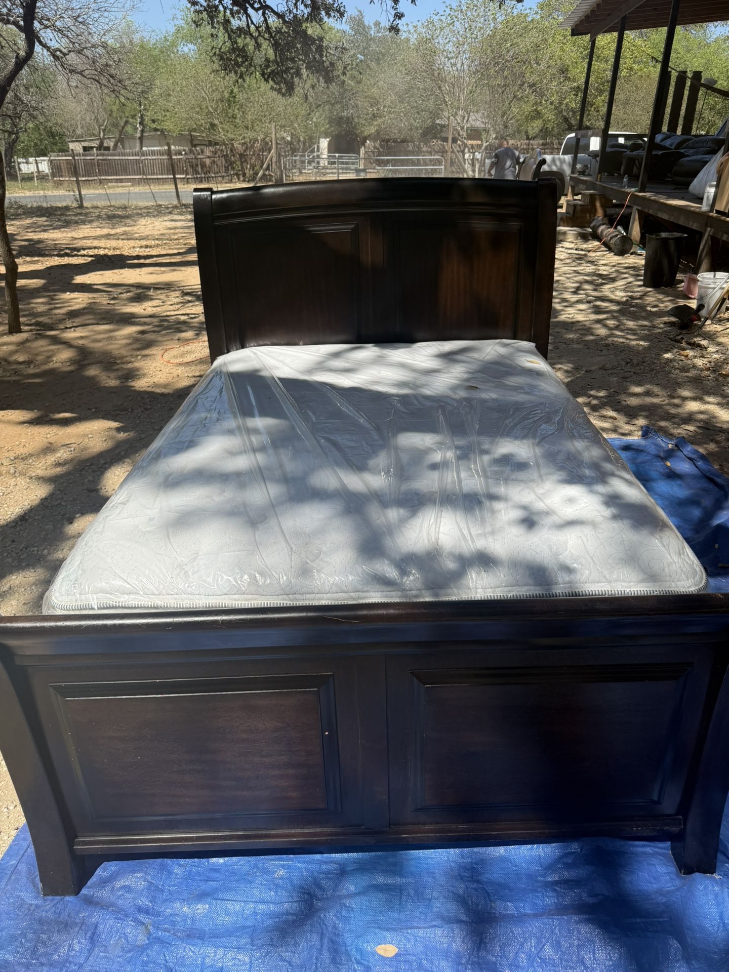 Dark Brown Solid Wood Queen, Size, Bedframe, Mattresses, And Boxspring