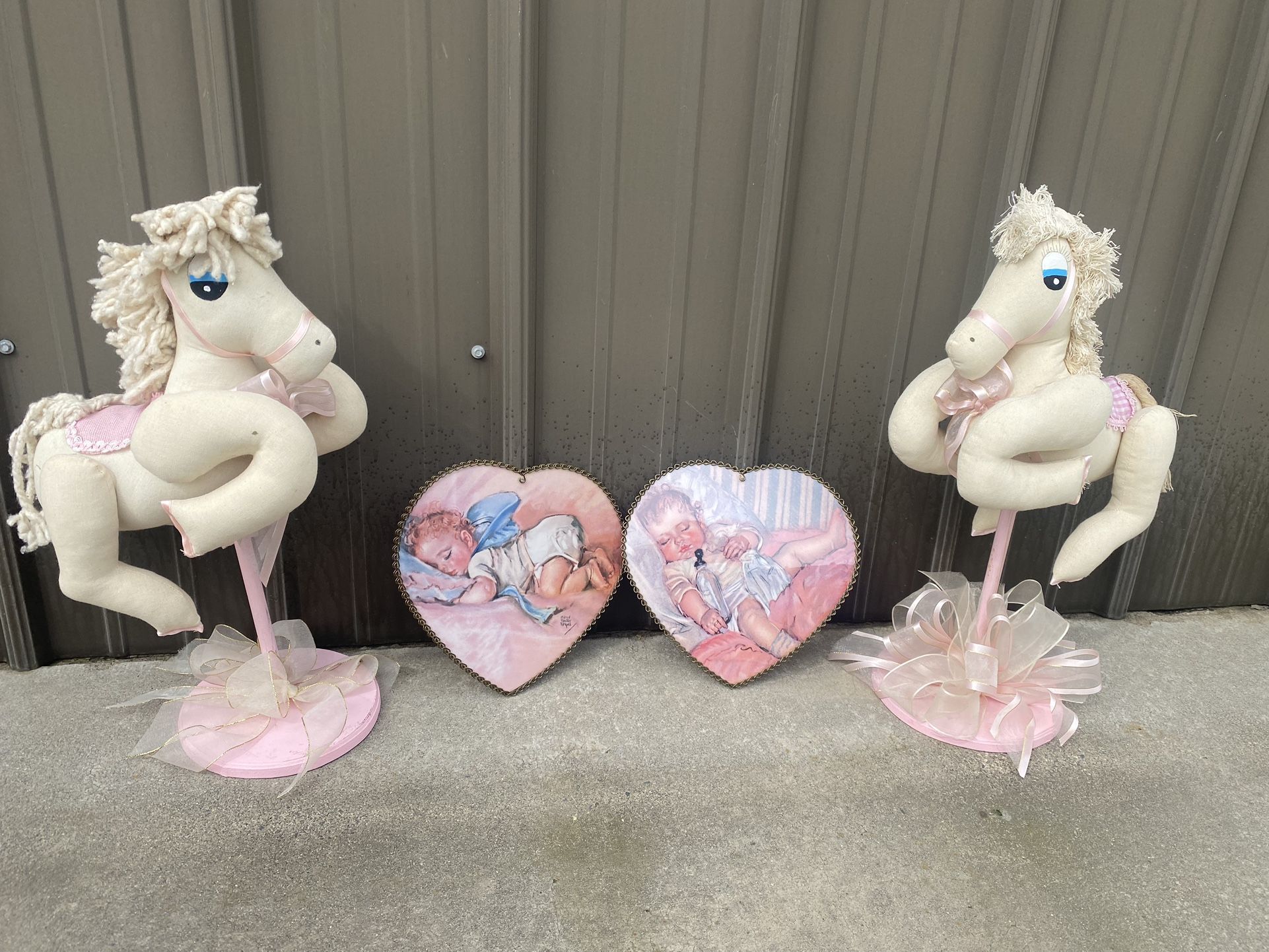 Vintage Decor For Nursery Or Baby Girls Room. 2 Horses + 2 Heart Shaped Pictures. Take All For $60 OBO Or Message Me For Individual Prices. Clearing Out Storage Need To Get Rid Of ASAP.