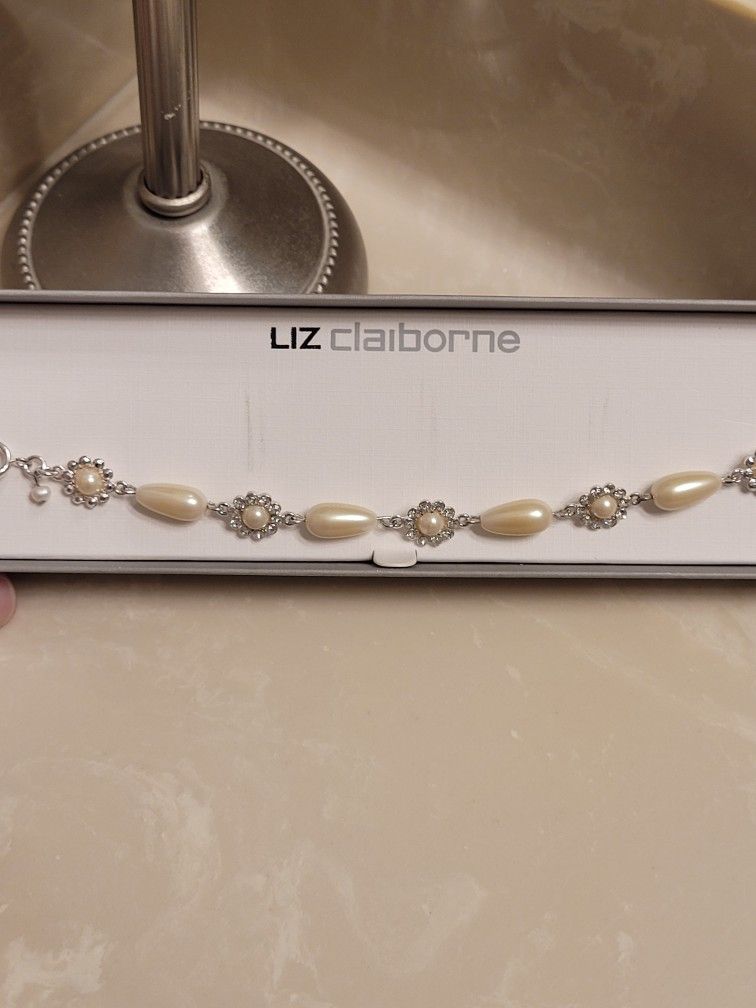 Liz Claiborne Silver CZ and Pearl Bracelet