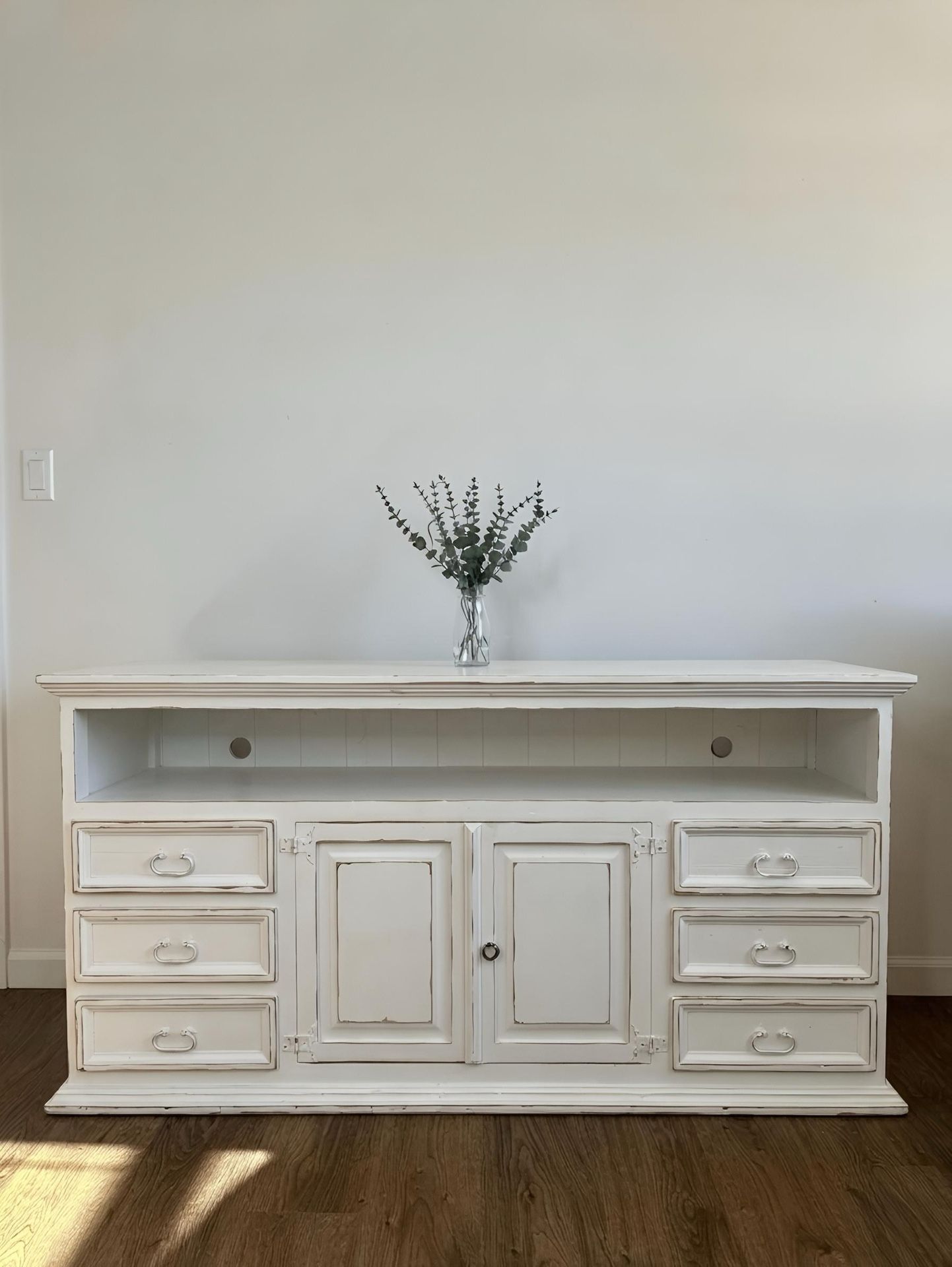 Distressed White TV Stand/ Sideboard