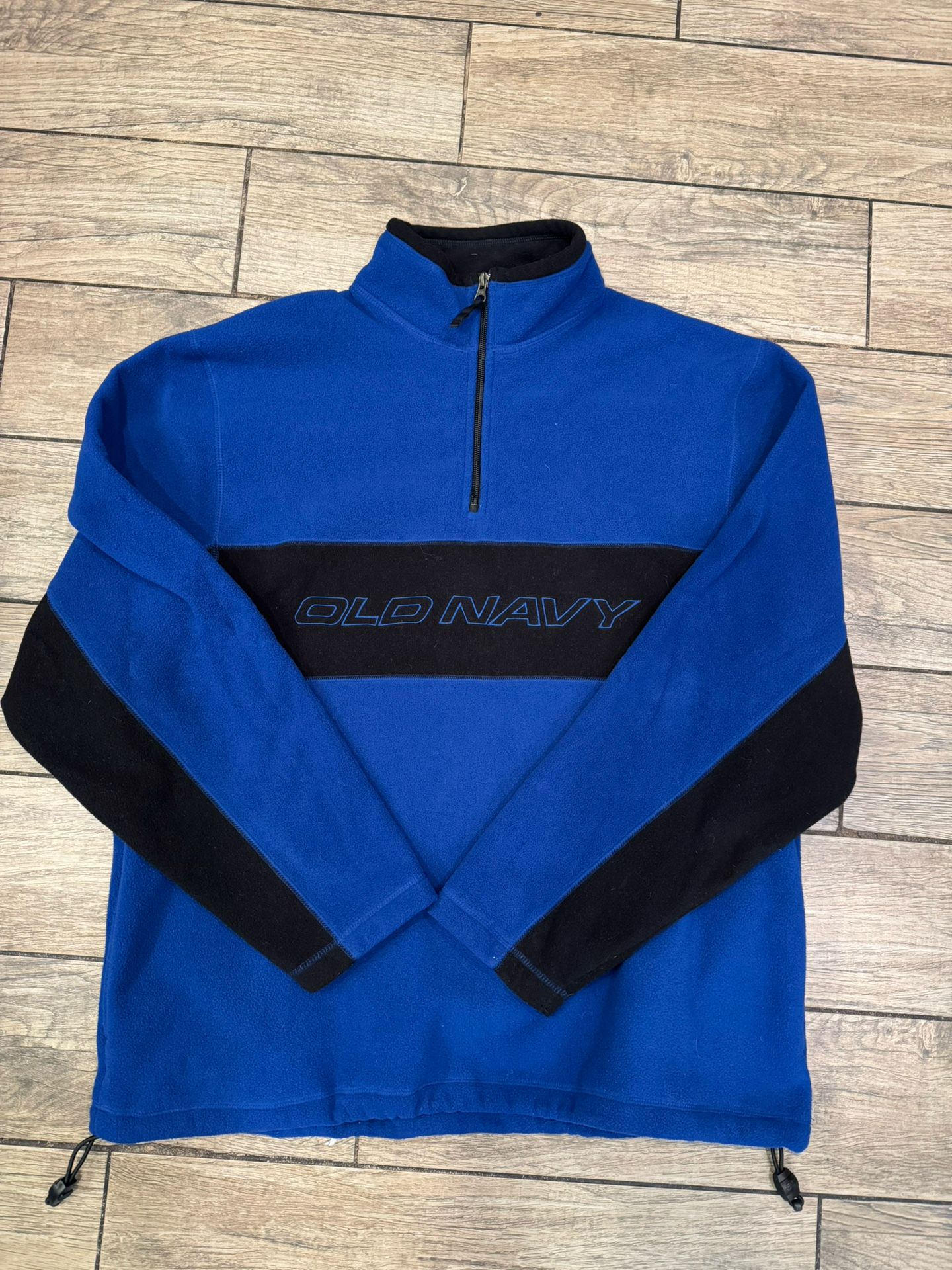 Old Navy Vintage Y2K Fleece 1/4 Zip Pullover Sweater Royal Blue Black Men's