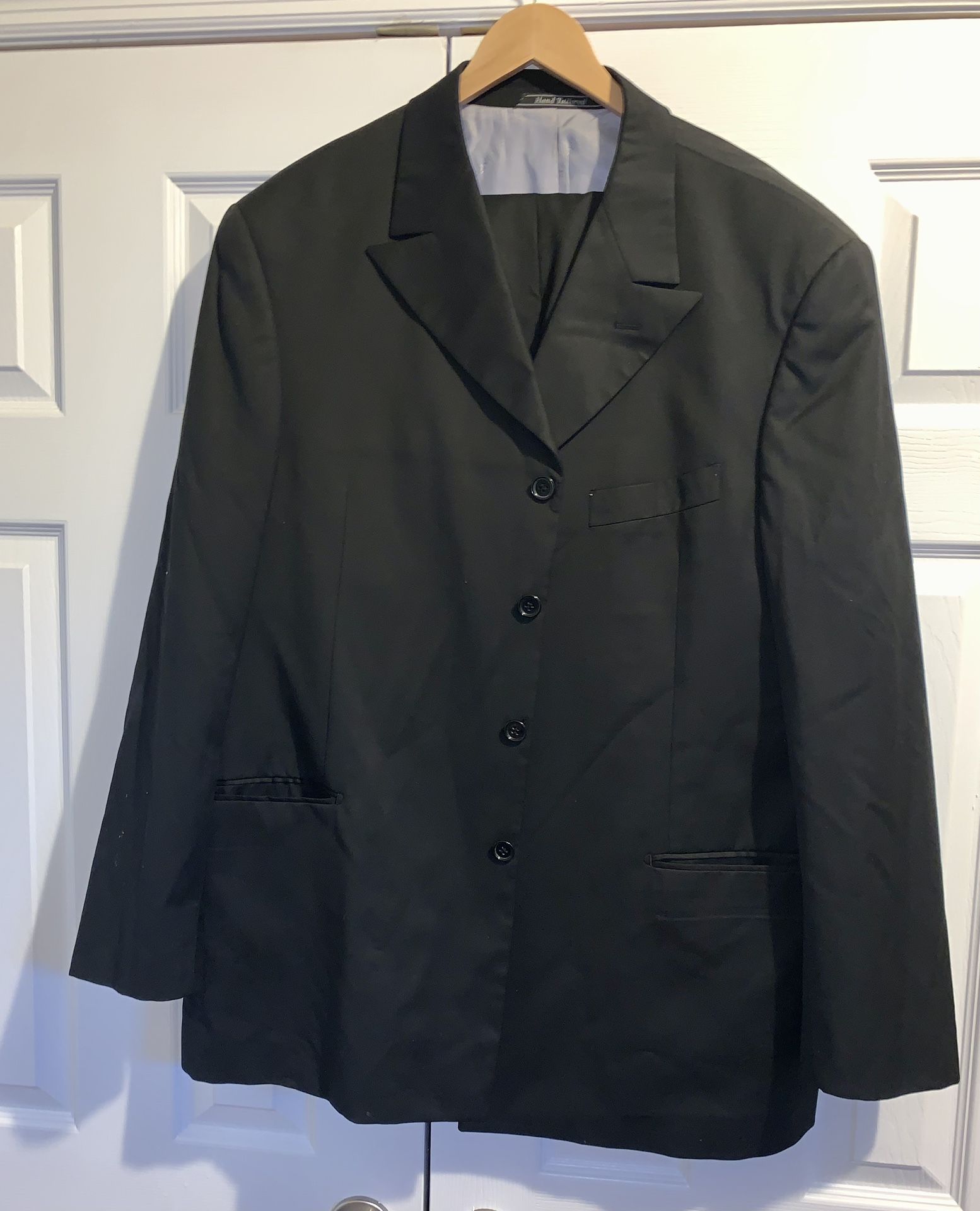 Mens Solid Black stylish 2 piece dress suit in gently used condition