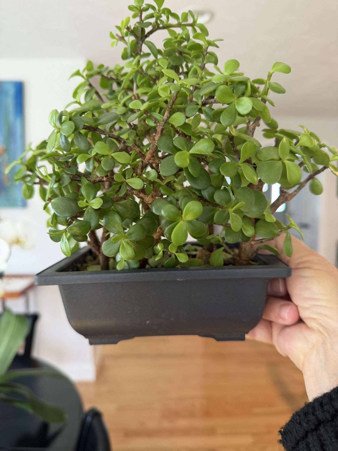 This is a mini jade plant with multiple stems. They make really cute bonsai.