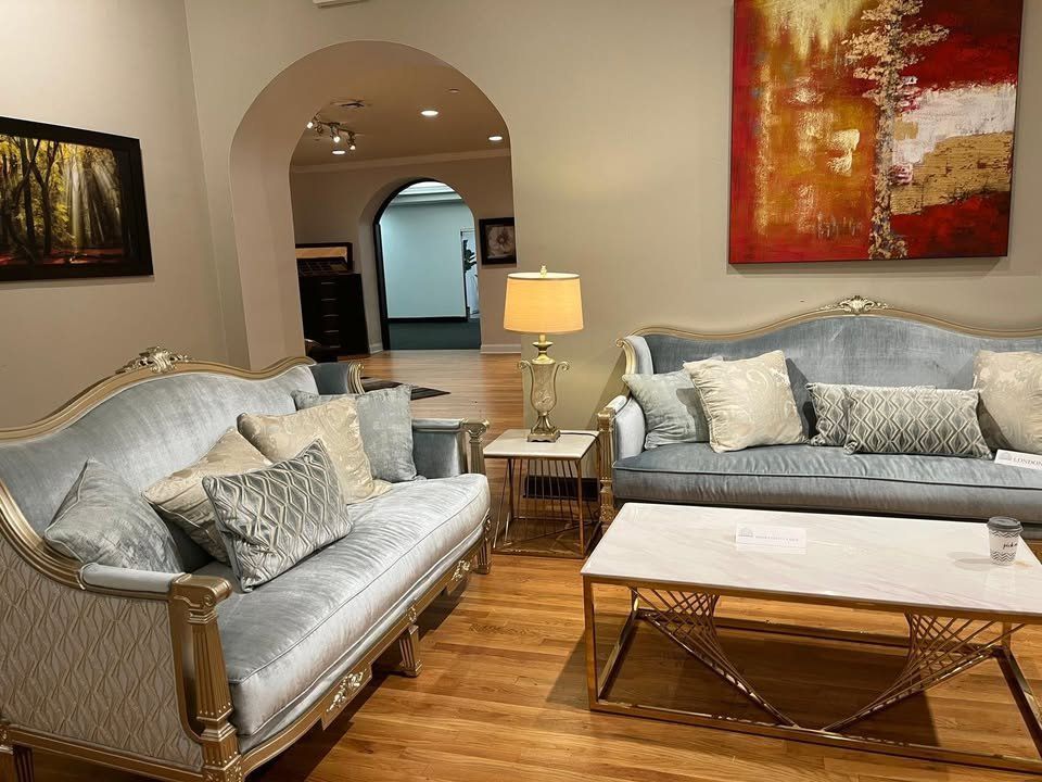 The London Living Room Set is a show-stopper that redefines luxury with its striking and unique turquoise color, creating a vibrant focal point in any room. This set exudes opulence, featuring exquisitely intricate gold detailing that enhances its rich, luxurious design. Each piece is crafted with meticulous attention to detail, offering a blend of high-end glamour and sophisticated style. The London Living Room Set stands out with its bold color and ornate gold accents, making it the perfect choice for those who seek a dramatic and elegant statement in their living space Sofa Sale Price @ $2199.00 Sofa + Loveseat Sale Price @ $3499.00 We offer various finance plans $39 down same as cash with no interest for 90 & 100 days. Longer financing plans are also available. Lowest prices, great quality products and exceptional service guaranteed. We also have a wide range of other living room, bedroom and dining room products to choose from at highly affordable prices. For buying visit Splendid Furnishings located at 4073 Lavista Road, Suite 311, Tucker GA 30084 or call 470-269-9301.