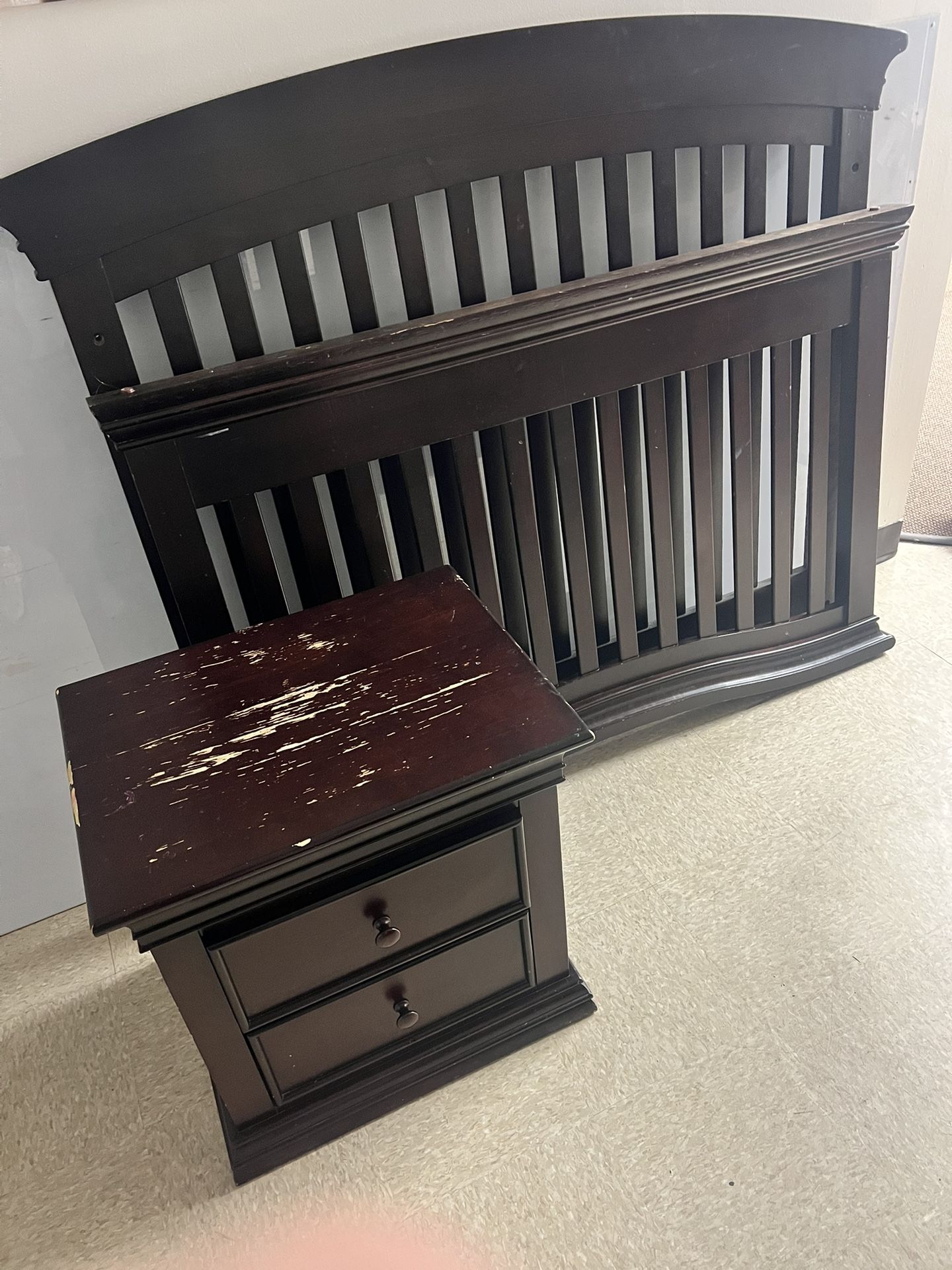 Full size bed set + dresser + night stand + all slats & screws. Some Cleaning & fixing required.