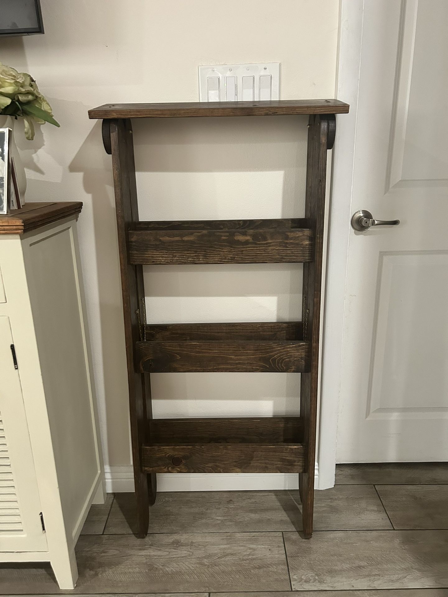 Beautiful solid wood ladder, sturdy and well-built. Can be used as a decorative ladder, blanket ladder, plant display, or ……. Rich dark wood finish, very stable, and in great condition. Dimensions: • Height: 47 inches • Width: 21 inches Details: • Strong, heavy-duty construction • Foldable for easy storage • Great for farmhouse, rustic, or modern décor • Clean, smoke-free home Perfect for home décor, retail display, or functional use. Pickup only. Cash is king #Wood #WoodLadder #DecorLadder #BlanketLadder #HomeDecor #RusticDecor #FarmhouseStyle #SolidWood #ForSale