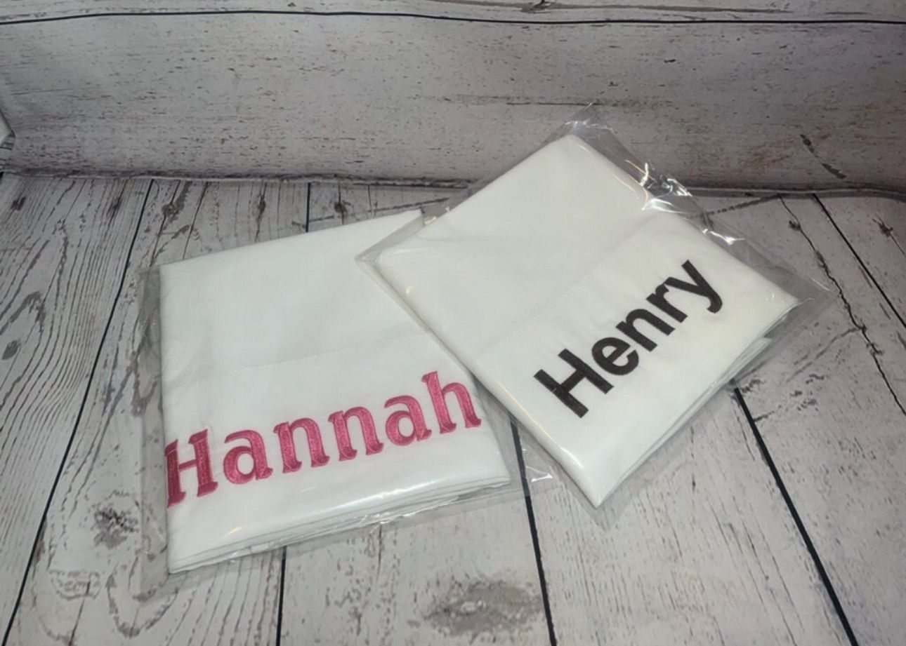 Pillowcase Embroidered Pillow Cases Embroidered Pillows Custom Embroidery Monogrammed Pillow Cases Party Favors Supply your own. $10 each name 1-5in $2 extra over 5 inches