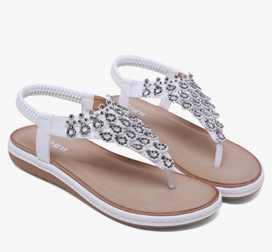 Brand new. Size 6.5 Ulogu Women's Flat Sandals Dressy Summer Beach Shoes Casual Comfortable Boho Rhinestone Thong Flip-Flop w Elastic Strap. Available for pickup in waldorf. Cash or Zelle. No cash app.