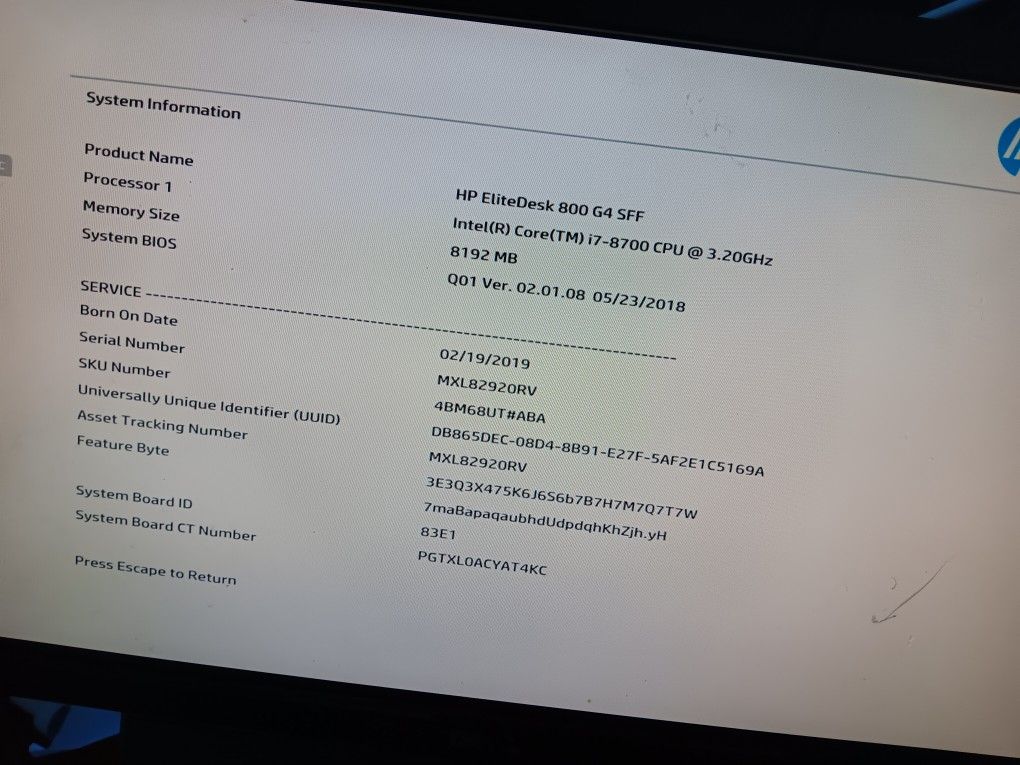 HP EliteDesk 800 G4 Desktop Computer: Intel Core i7 8 (8th Gen 8gb ram 500 gb hd )