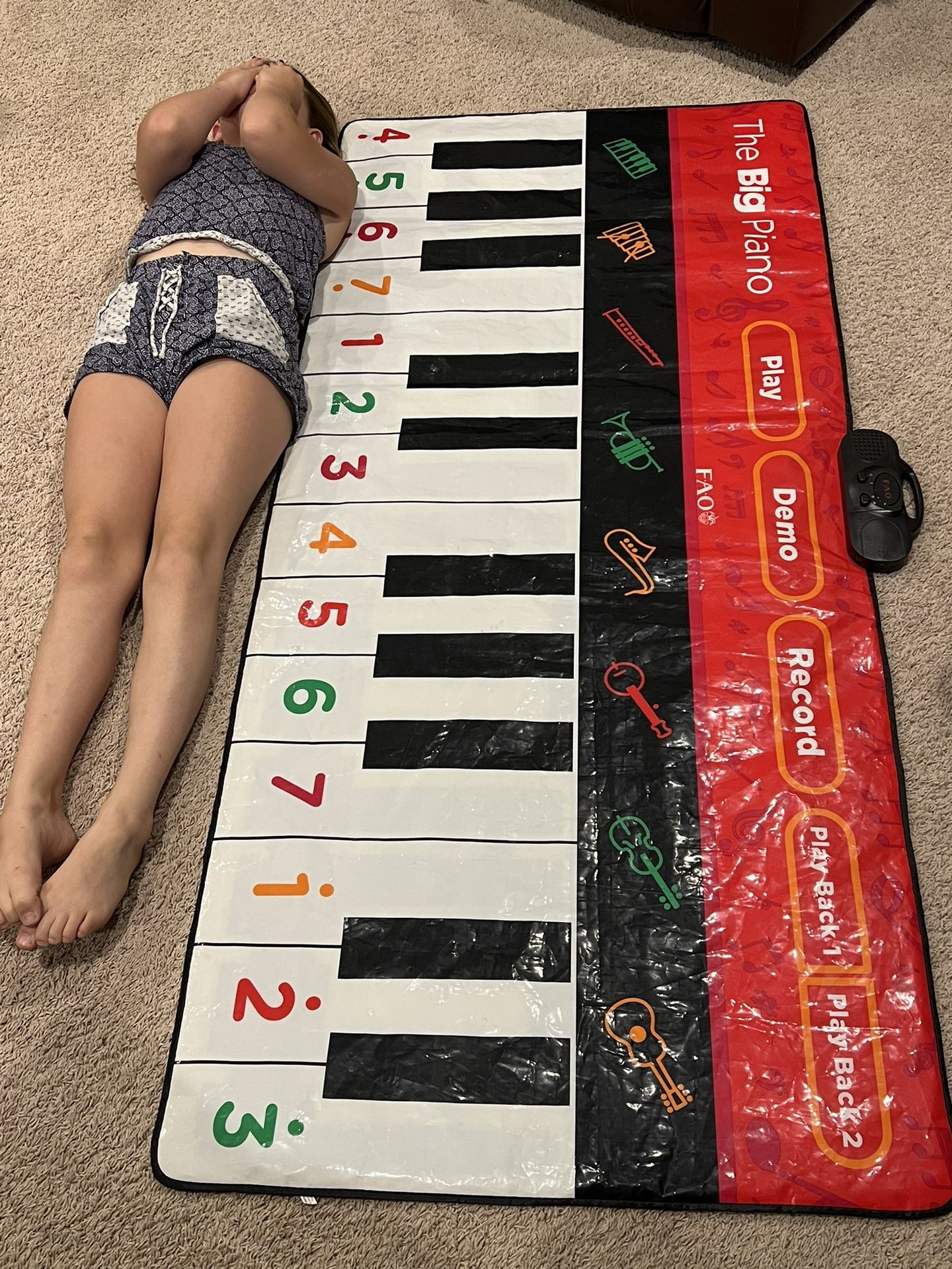31”x69” foldable, walk on piano for the next baby Mozart! Very good condition- no tips or tears. Batteries still work so this is ready to JAM! Excellent Christmas or Birthday gift