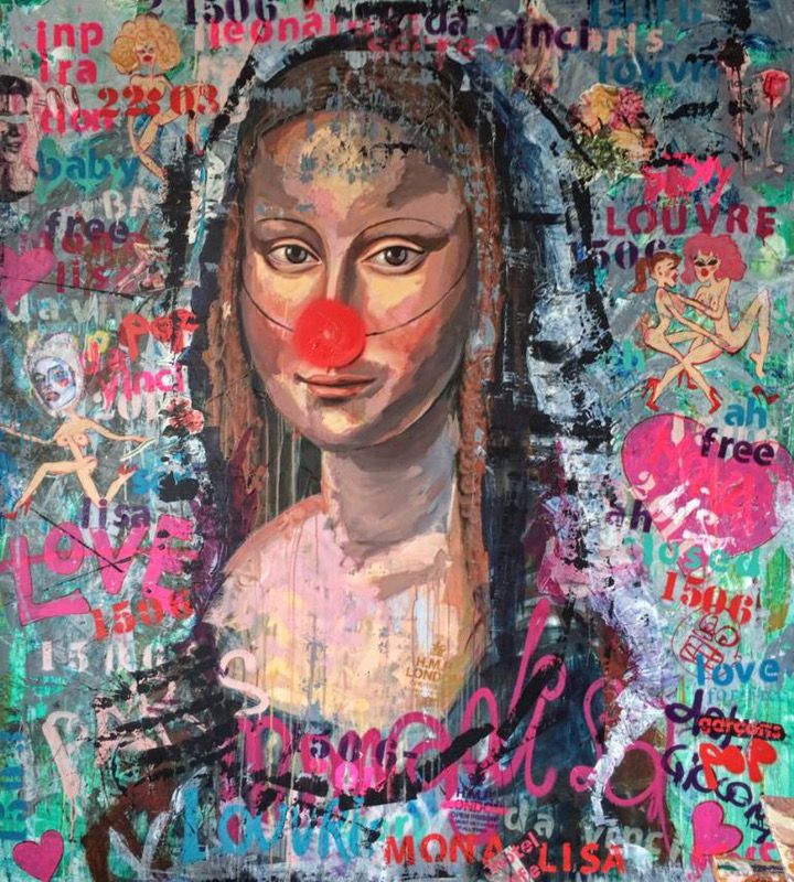 Amazing 18 x 20 Funky Mona Lisa Giclée canvas print art. Printed on premium museum quality archival canvas stretched on pine wood bars gallery wrapped and finished with a gloss varnish. A Giclée (pronounced zhee-clay) refers to a category of collectible fine art similar to lithographs and seriographs. A Giclée is created using sophisticated digital printing technology-millions of microscopic droplets of archival ink per second are applied to the canvas resulting in museum quality prints with colors that are indistinguishable from the original. Giclee's of the great master's paintings are displayed at the finest art galleries across the USA including the Museum of Modern Art, NY, the San Francisco Museum of Modern Art, and many others. A Giclée reproduction is the highest quality print available in the fine art world today.