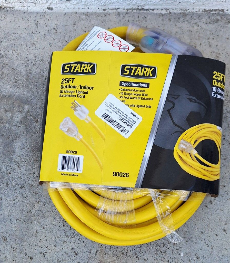 25ft Lighted Outdoor Extension Cord - 10/3 SJTW Heavy Duty Yellow Extension Brand New Se habla español