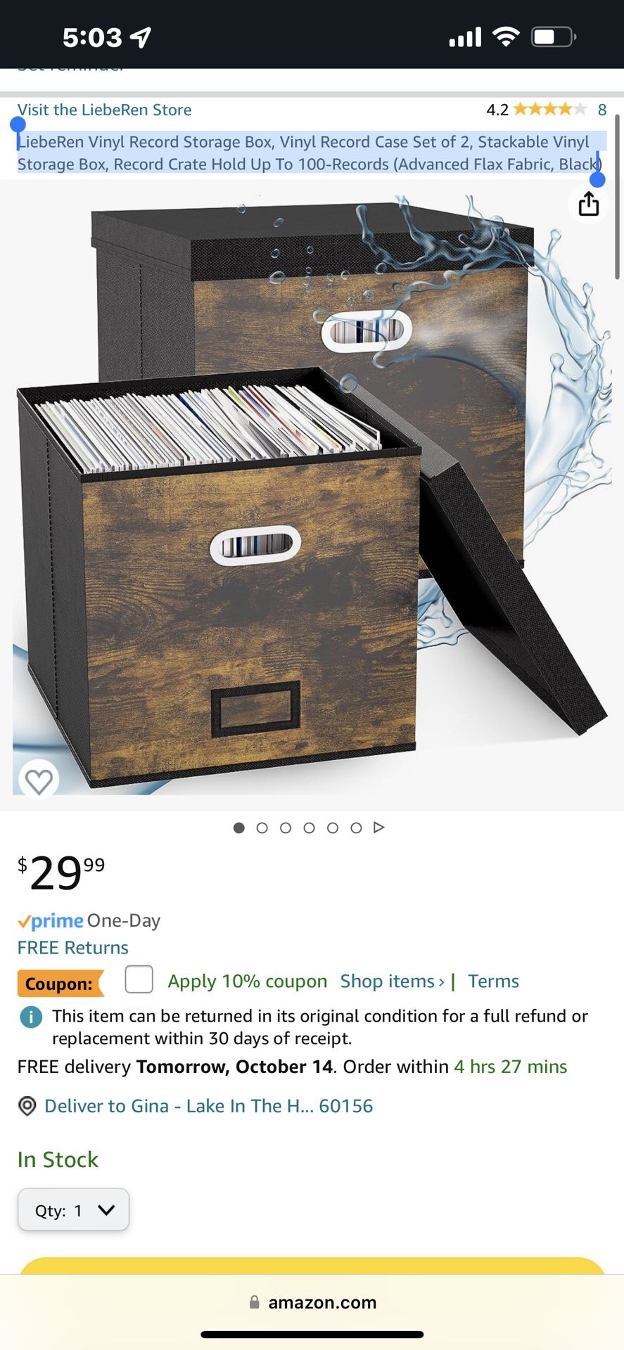 LiebeRen Vinyl Record Storage Box, Vinyl Record Case Set of 2, Stackable Vinyl Storage Box, Record Crate Hold Up To 100-Records (Advanced Flax Fabric,