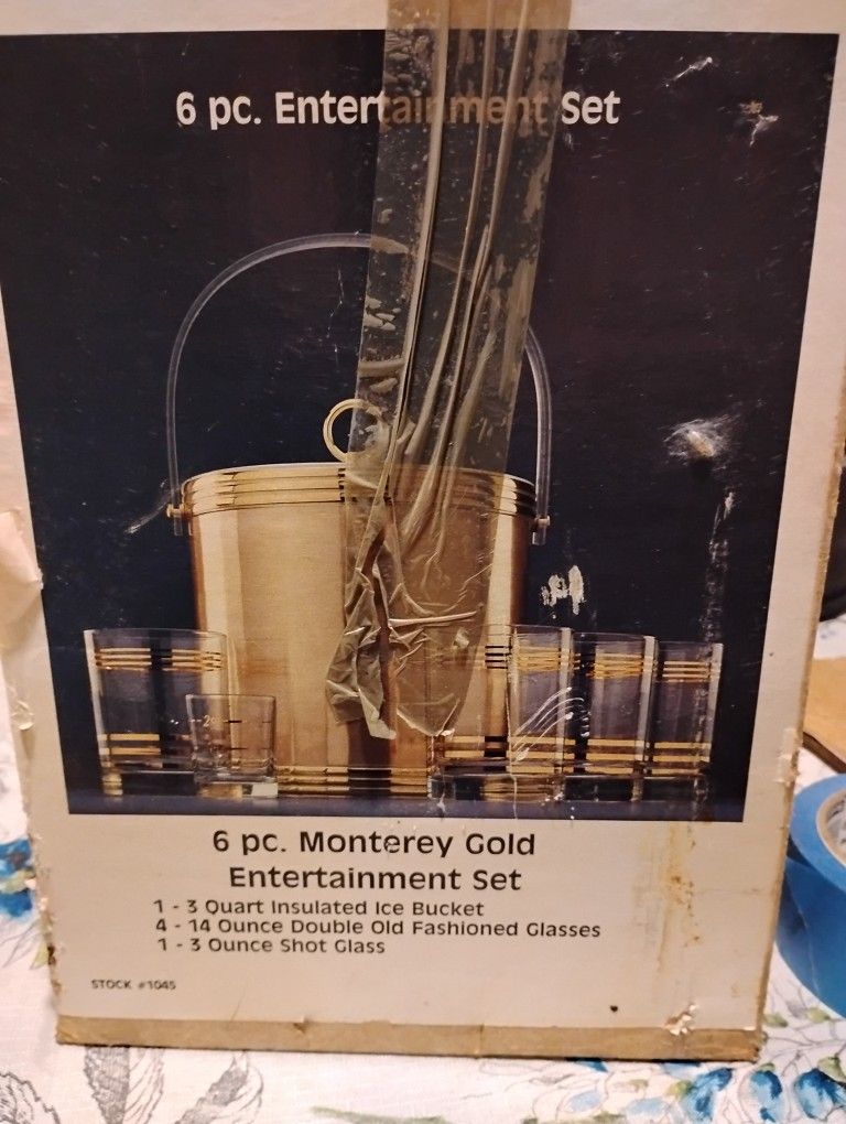 Monterey Gold 6pc Ice Bucket & Glassware Entertainment Set