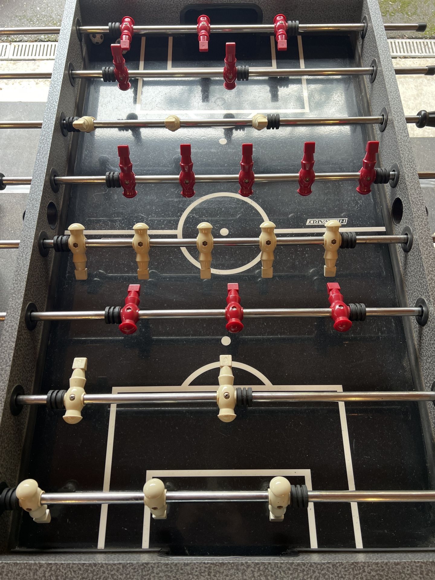 Harvard Foosball Table – Great Condition ⚽ Harvard foosball table in great condition. Solid and sturdy with smooth rods and all players intact (red vs cream teams). Playfield is clean and the table is ready to play — perfect for a game room, basement, or garage. Great for kids, teens, or casual play with friends and family. Classic foosball setup with easy scoring and durable construction. Message if interested!