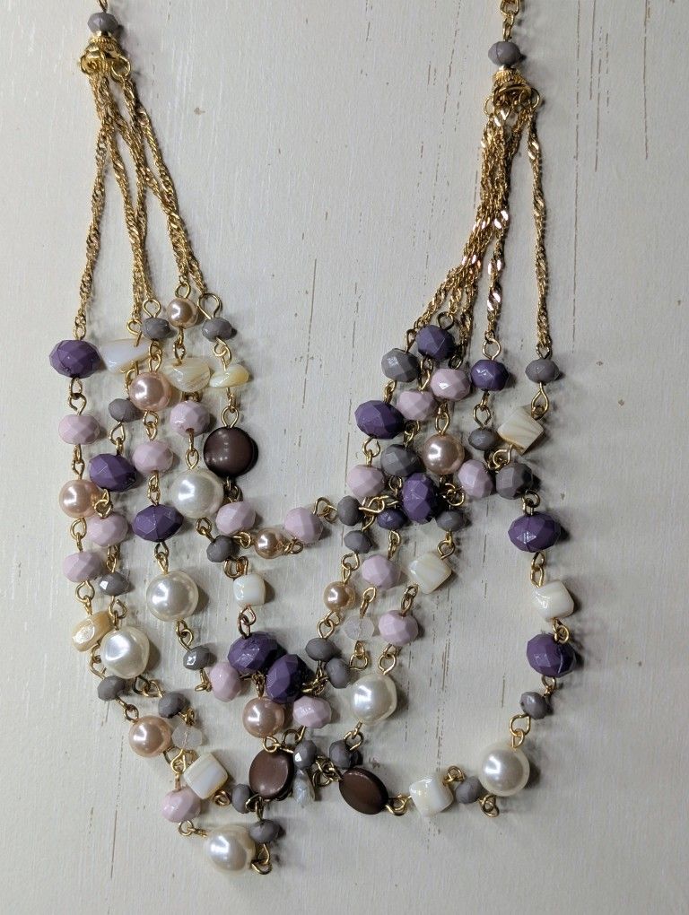 Brand New. Women layered various shades of purple with gold elegant necklace with matching pair of earrings.