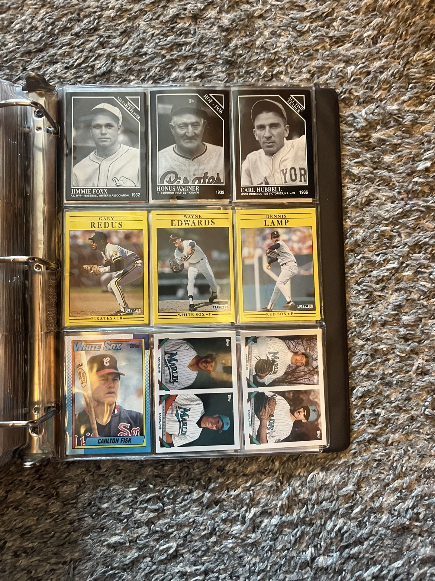 Whole binder with with a lot of old baseball cards and a lot of old Chicago white Sox cards. Collector and sports memorabilia in really good condition.
