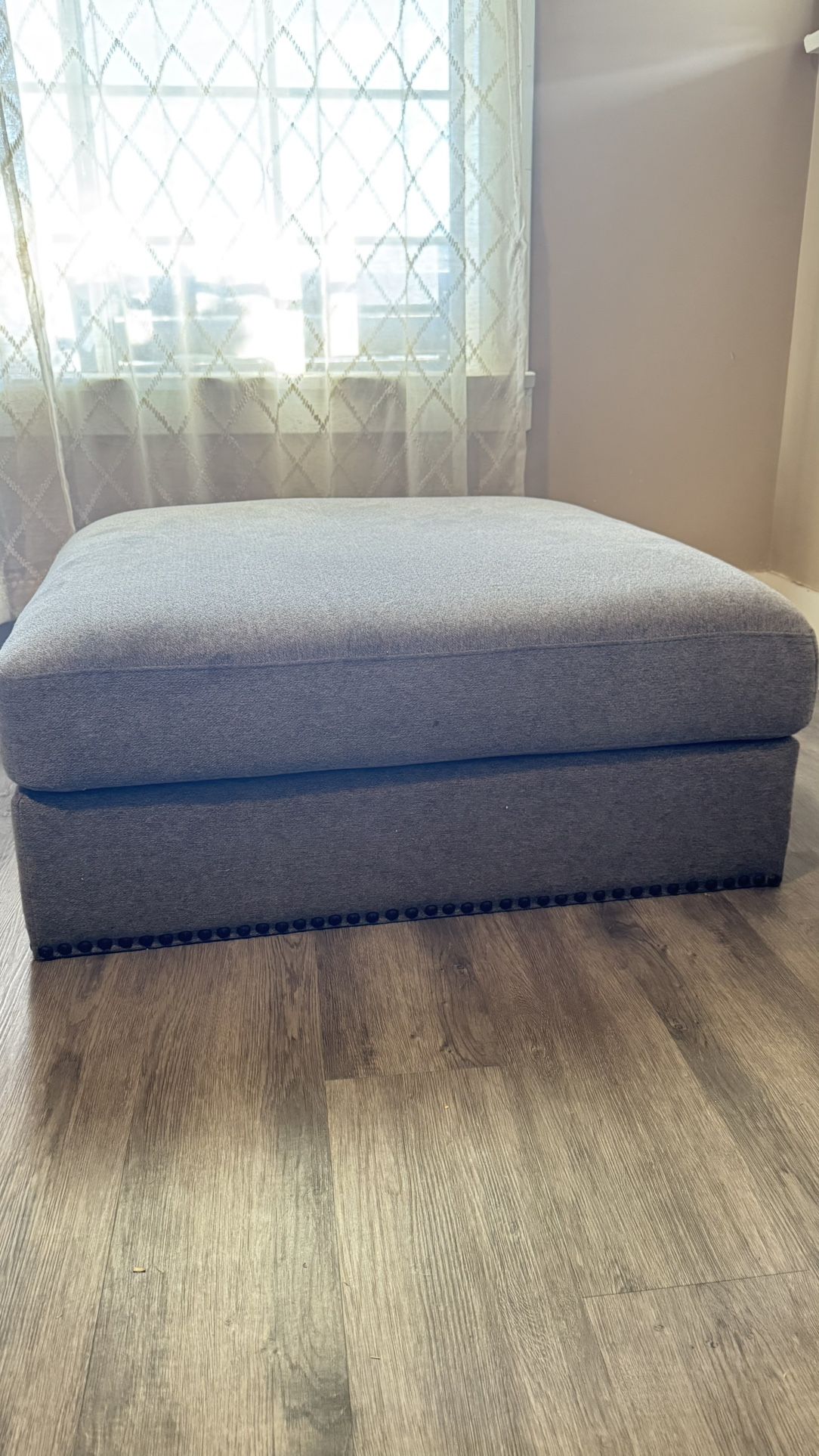 Pre-loved ottoman. Part of set, but no longer needed. Needs to be cleaned, but in good condition. Color: gray. Pick-up only. $45