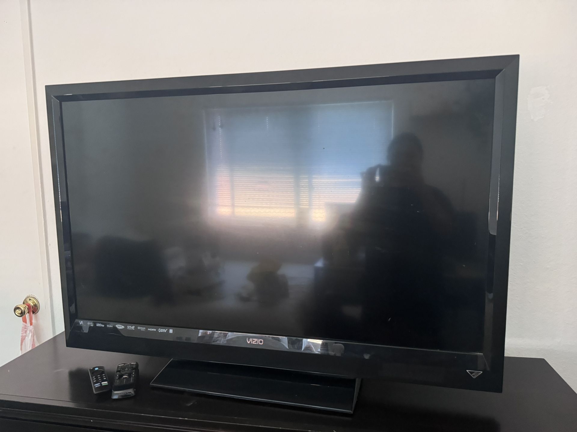40 inch tv, includes Amazon Firestick and the og remote. Can watch any streaming platform and can connect to HDMI as well. works really well for an older tv! it is a heavy tv, would need assistance picking it up.