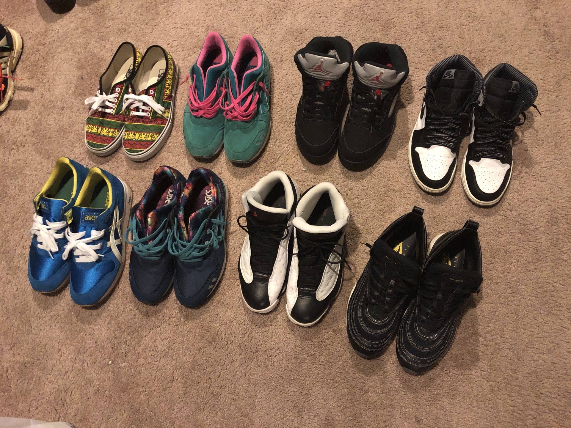 MAKE YOUR OFFERS, TESTING THE WATERS LOCATED IN UPPER MARLBORO. YES, I DRIVE. Sz 11: BARON 1s (9/10) METALLIC 5s (NDS) HE GOT GAME 13s (NDS) AIR MAX 97 RICARDO TISCI (8.5/10) RASTA VAN DOREN VANS (9/10) ASICS GALAXY GEL LYTE III (9/10) BRAZIL ASICS GEL LYTE (NDS) ASICS GEL LYTE III TEAL/PINK (9/10)
